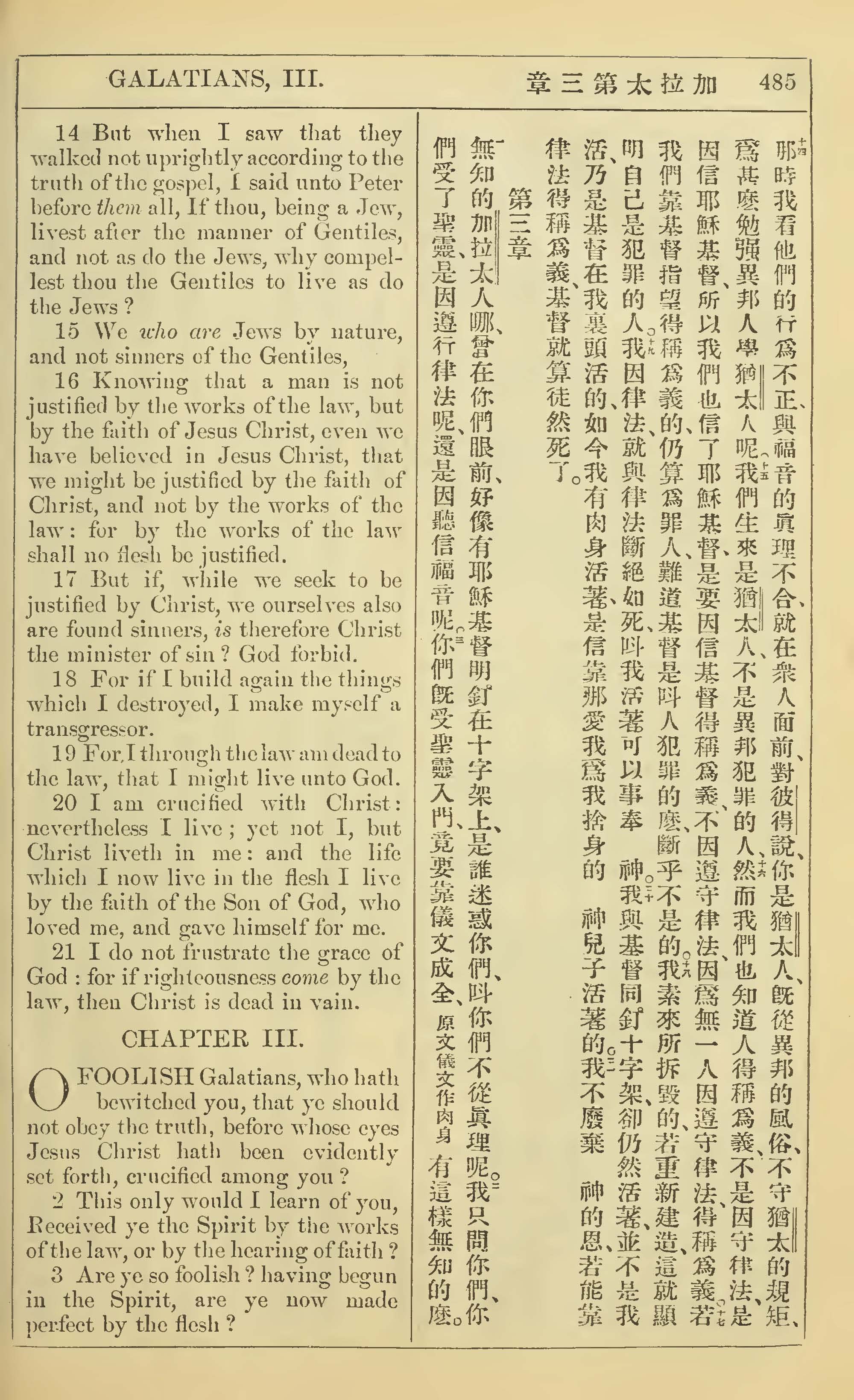 1902年新約全書(中英對照) 加拉太書 2 章 14 節到 3 章 3 節