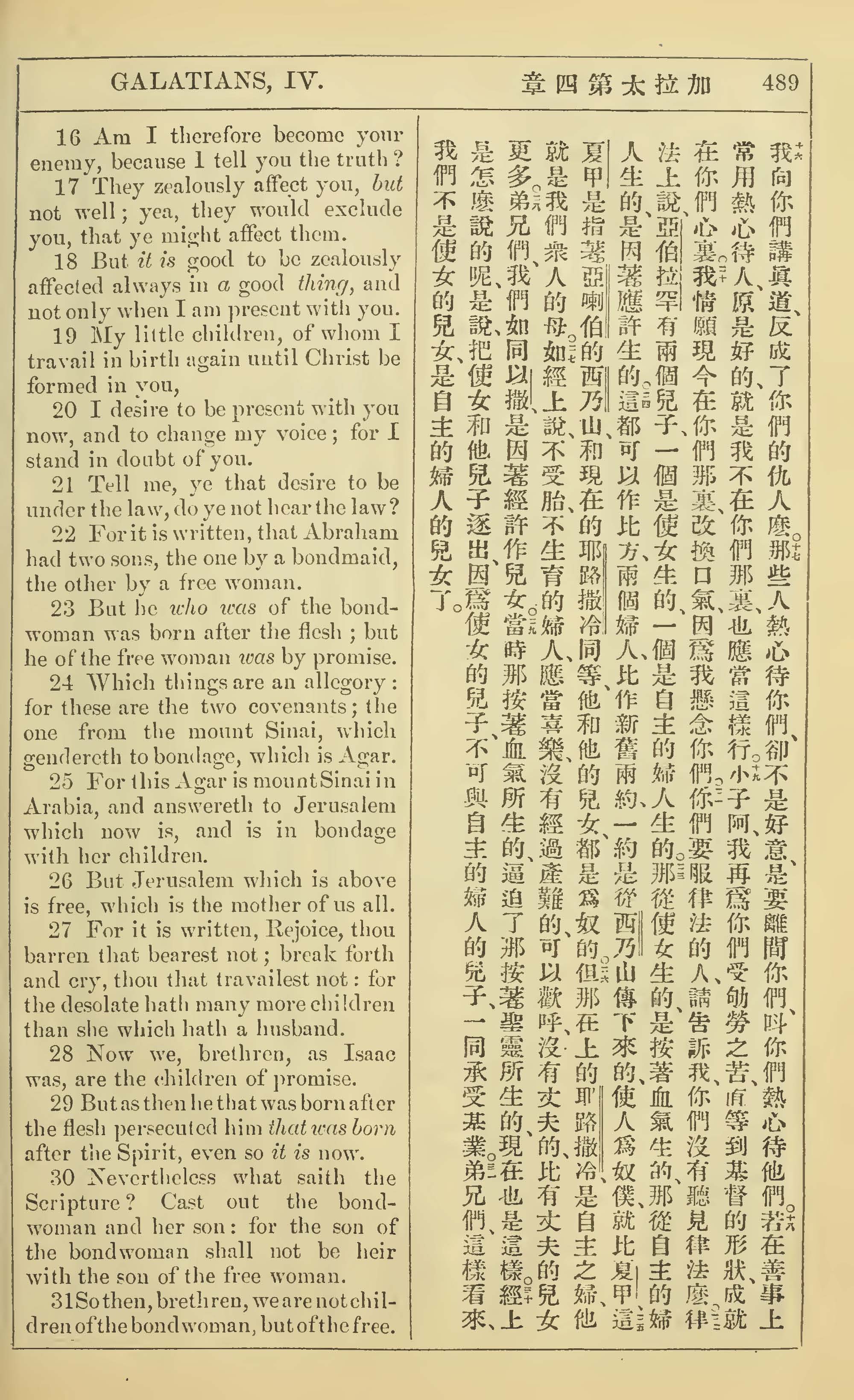 1902年新約全書(中英對照) 加拉太書 4 章 16 節到 4 章 31 節