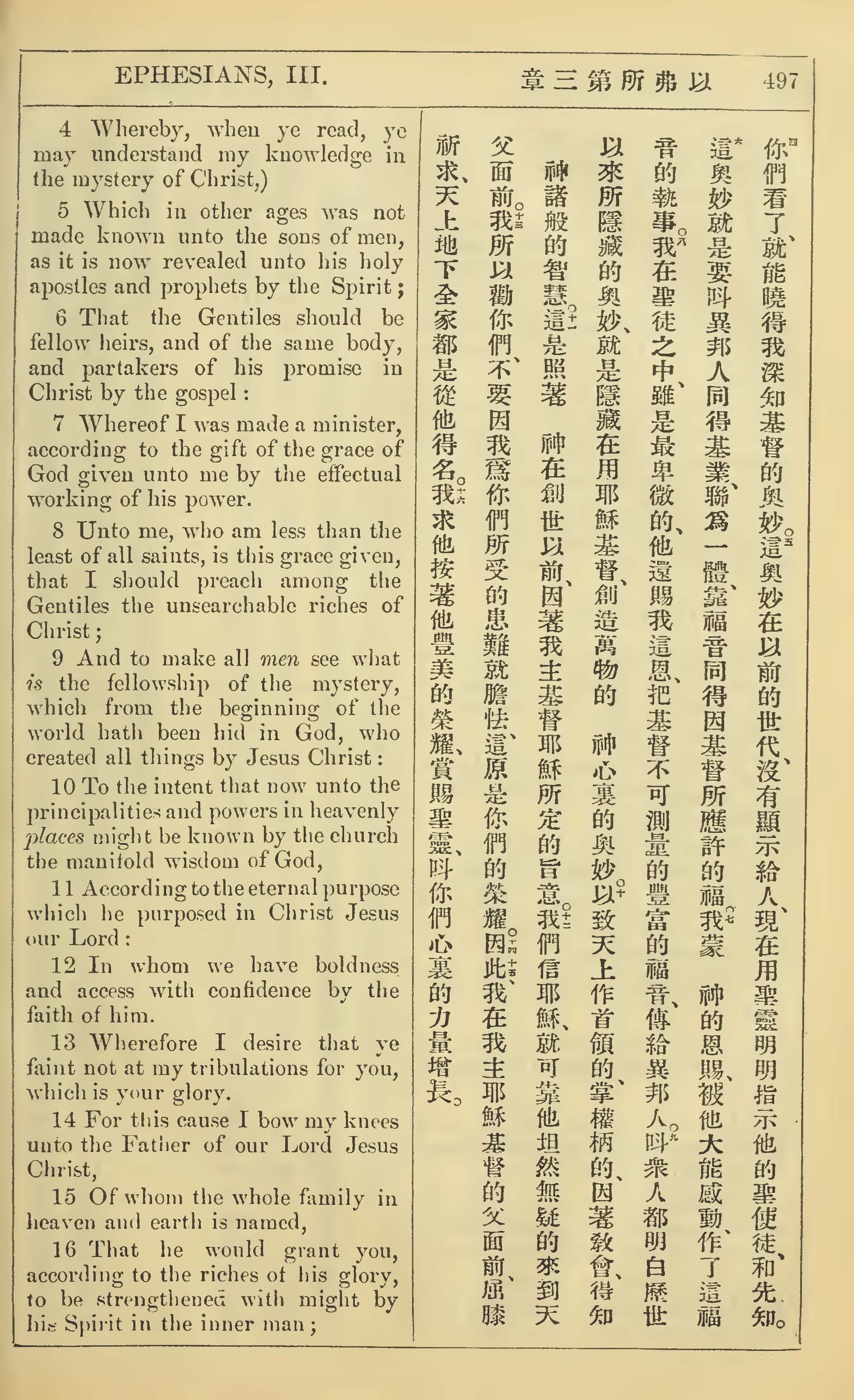 1902年新約全書(中英對照) 以弗所書 3 章 4 節到 3 章 16 節