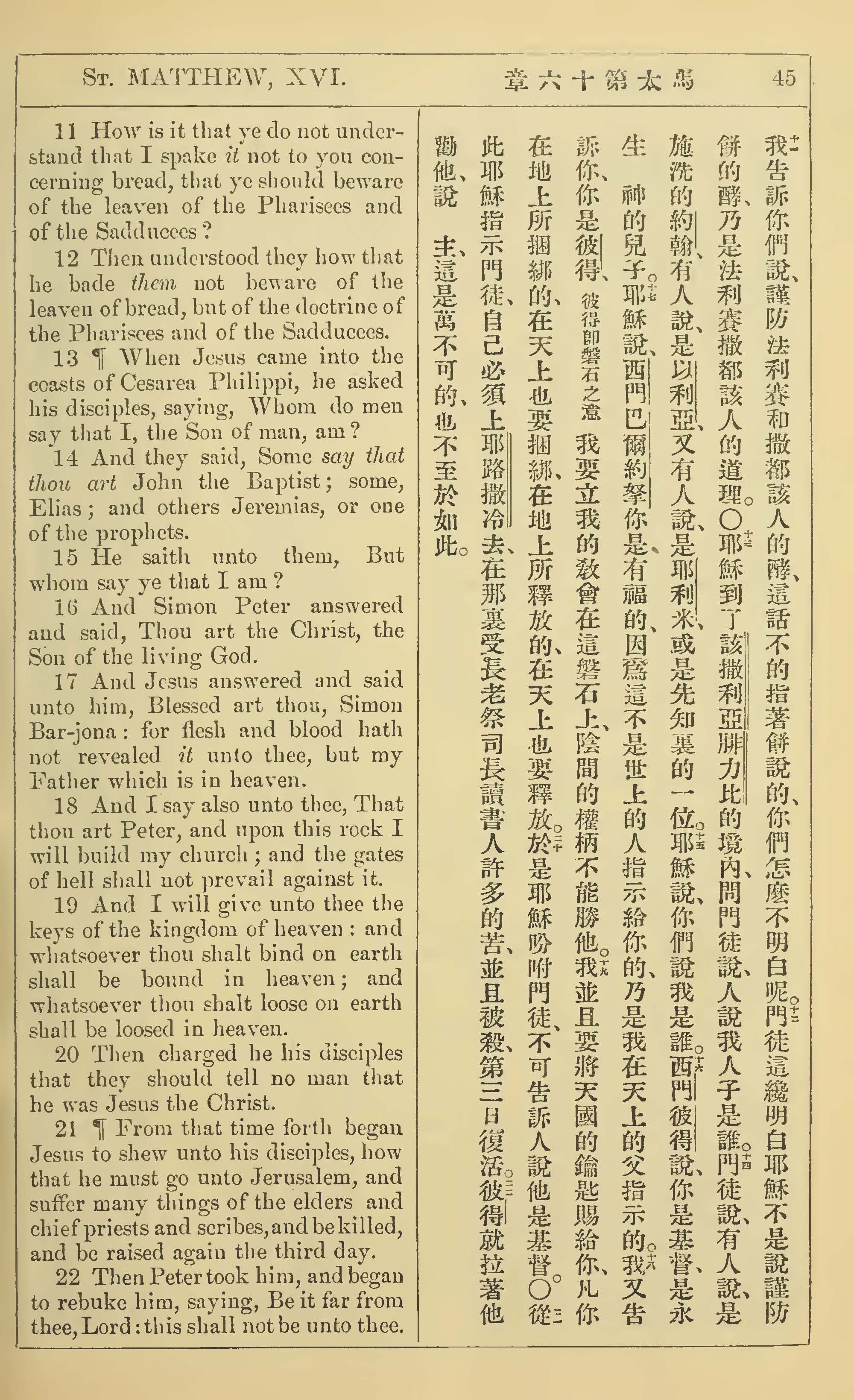 1902年新約全書(中英對照) 馬太福音 16 章 11 節到 16 章 22 節