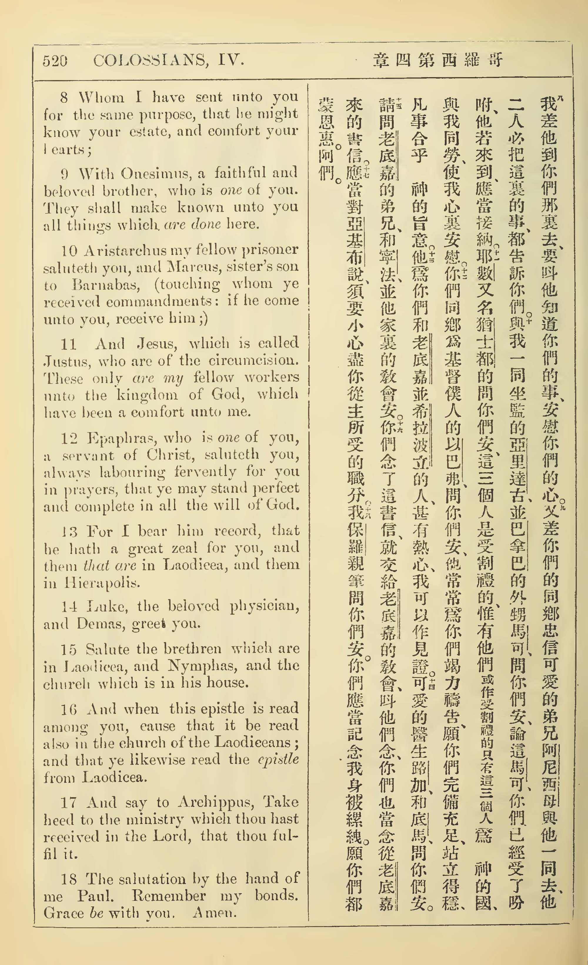 1902年新約全書(中英對照) 歌羅西書 4 章 8 節到 4 章 18 節