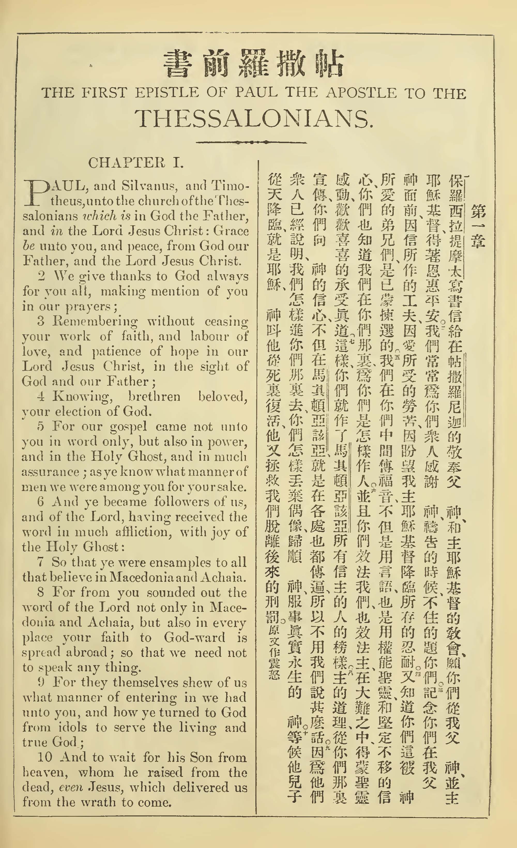 1902年新約全書(中英對照) 帖撒羅尼迦前書 1 章 1 節到 1 章 10 節
