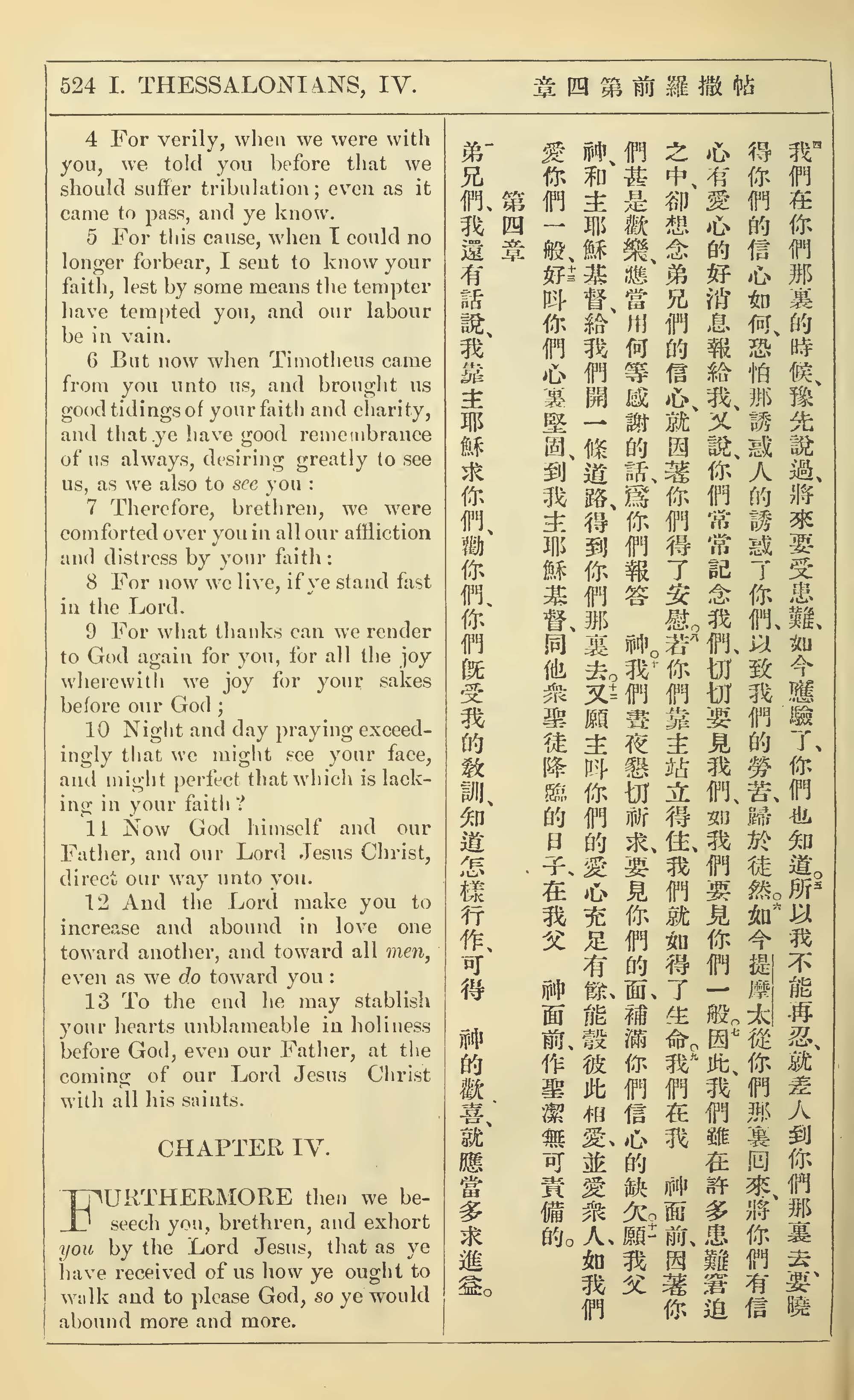 1902年新約全書(中英對照) 帖撒羅尼迦前書 3 章 4 節到 4 章 1 節