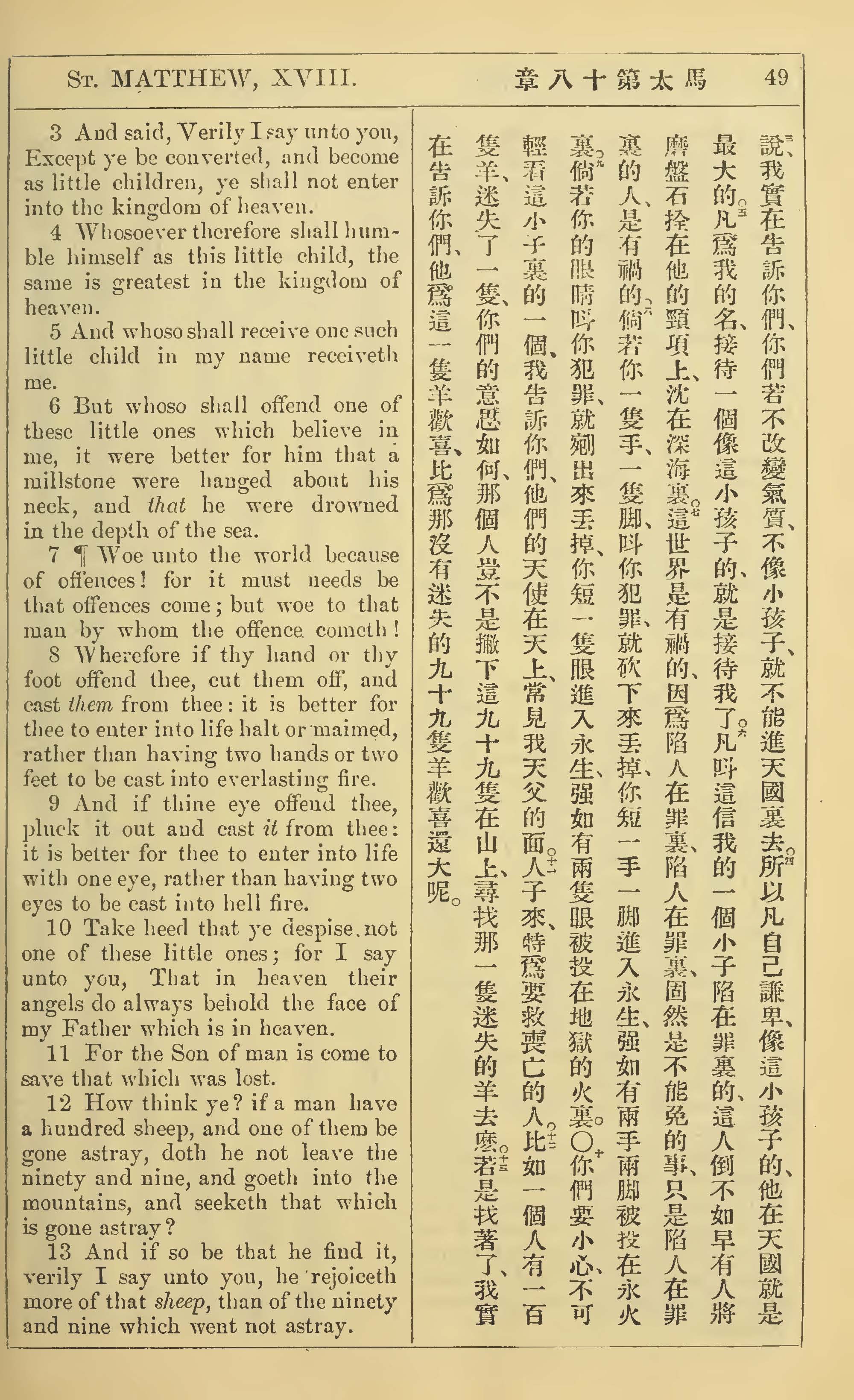 1902年新約全書(中英對照) 馬太福音 18 章 3 節到 18 章 13 節