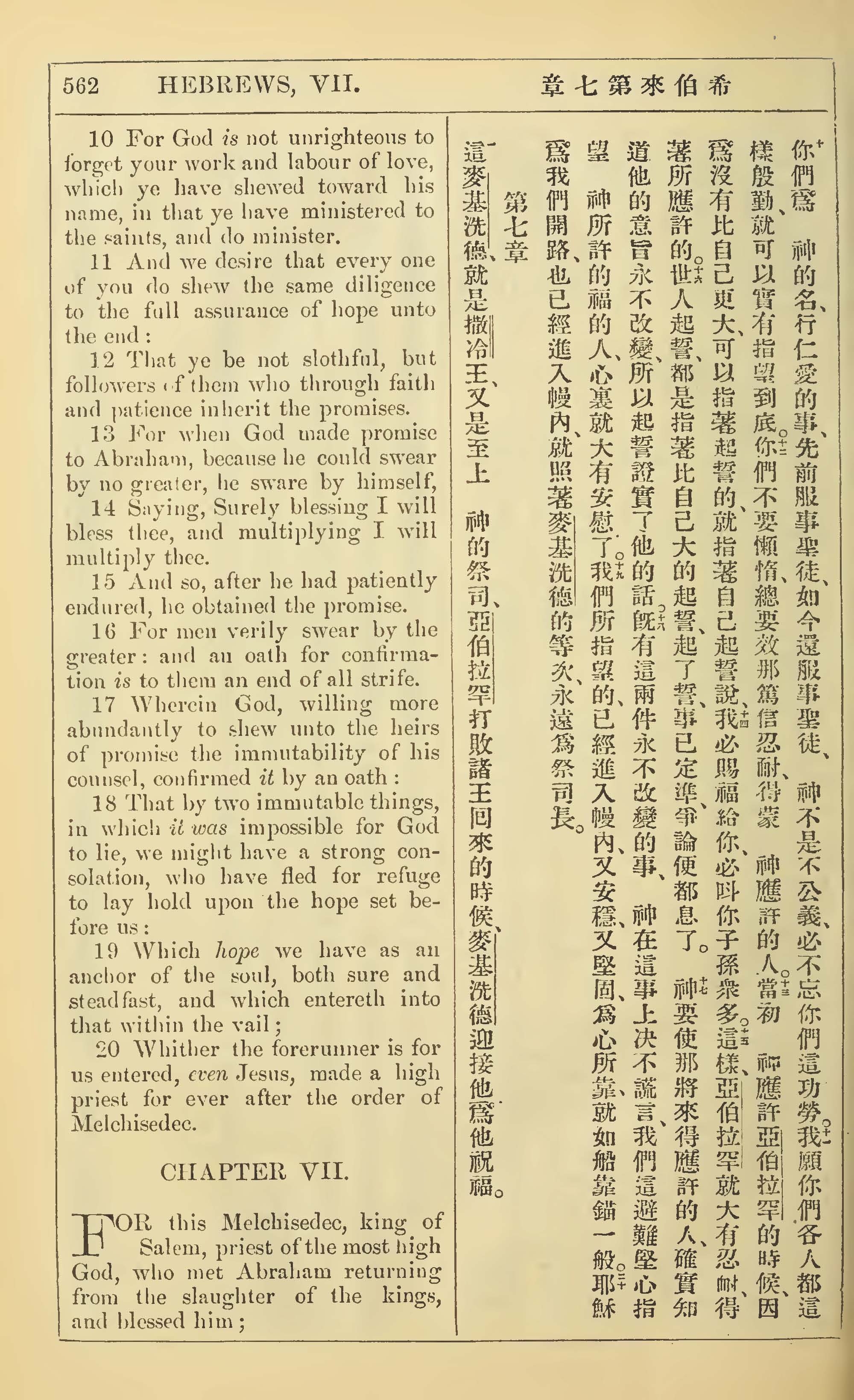 1902年新約全書(中英對照) 希伯來書 6 章 10 節到 7 章 1 節