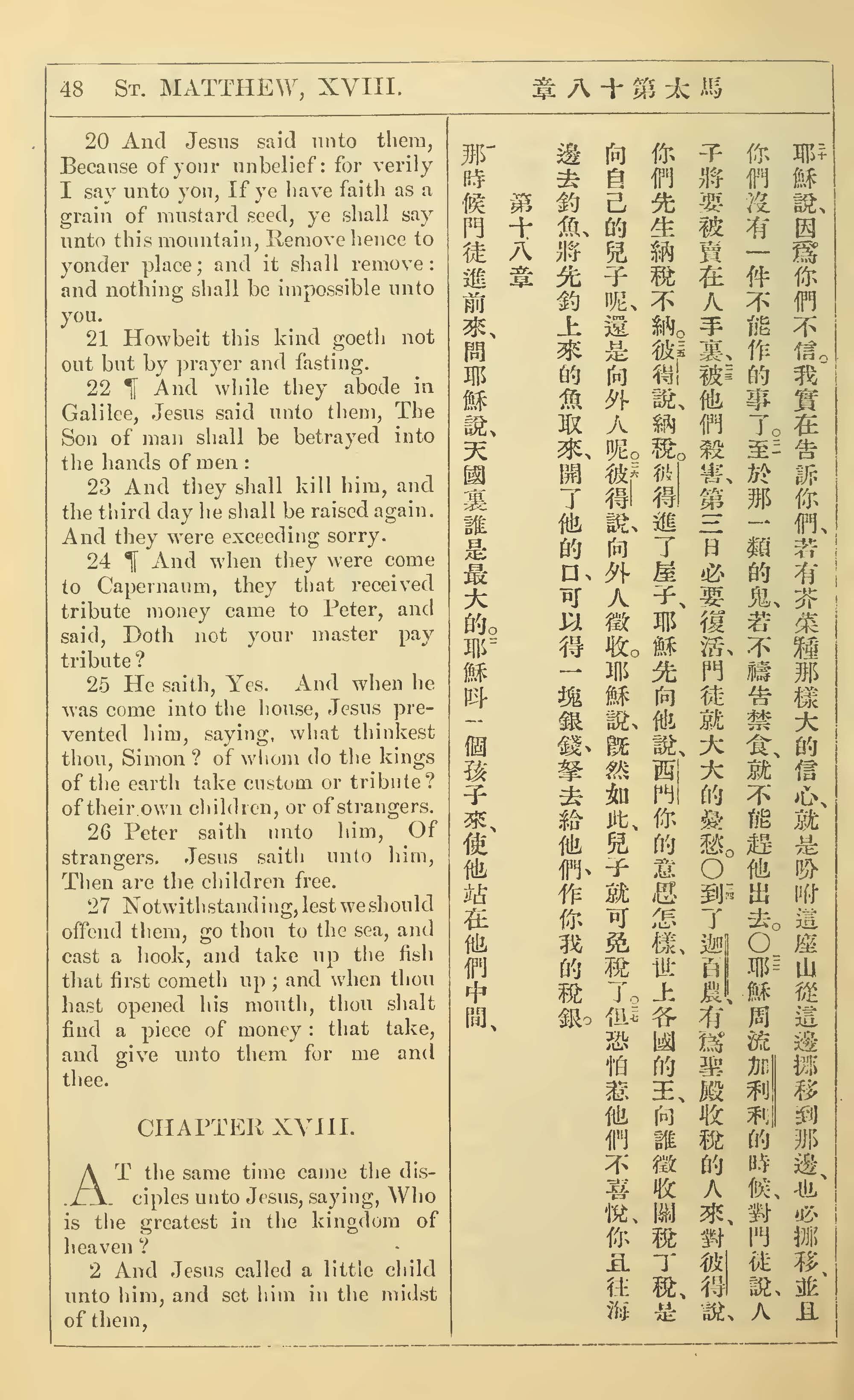 1902年新約全書(中英對照) 馬太福音 18 章 20 節到 19 章 2 節