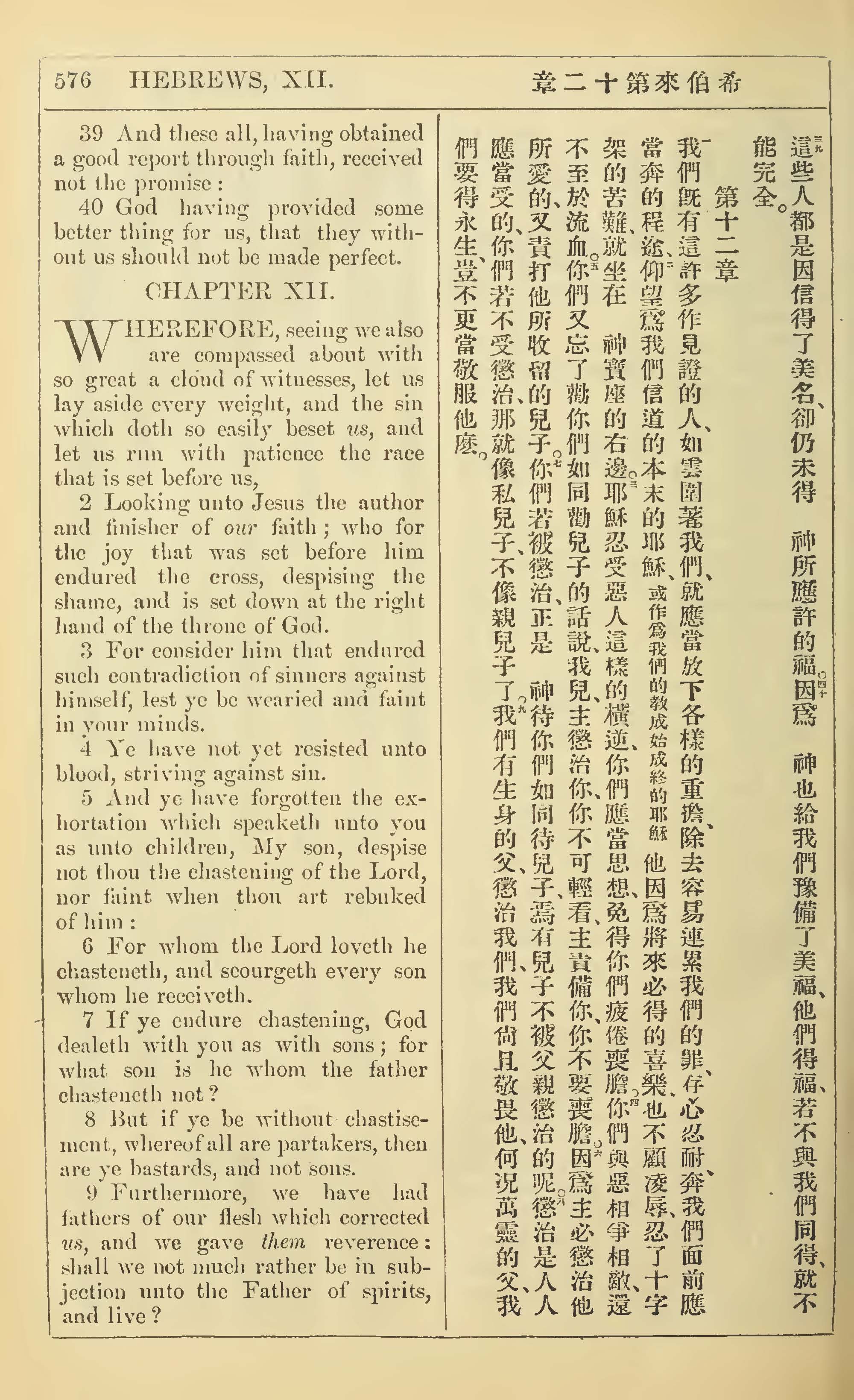 1902年新約全書(中英對照) 希伯來書 11 章 39 節到 12 章 9 節