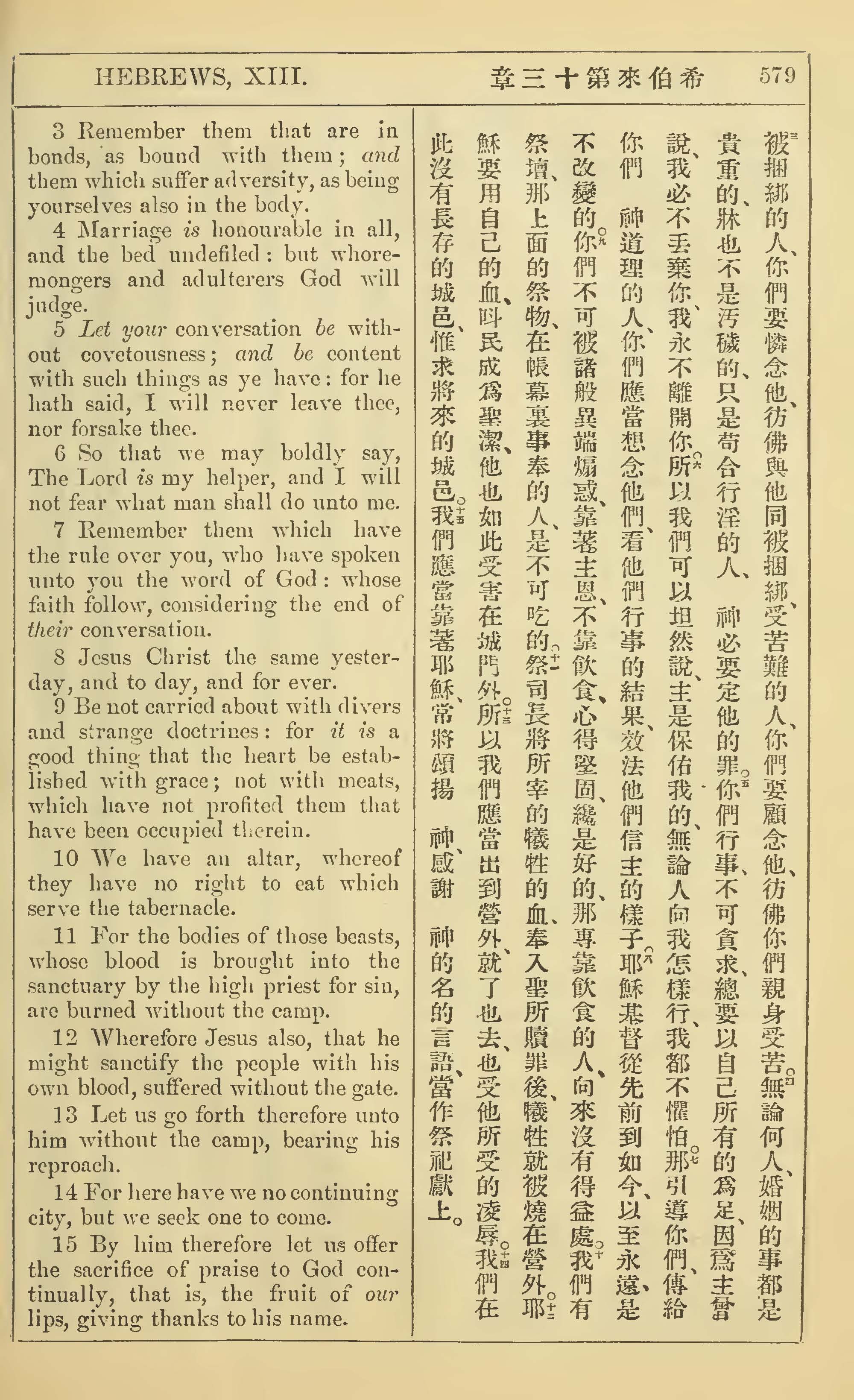 1902年新約全書(中英對照) 希伯來書 13 章 3 節到 13 章 15 節