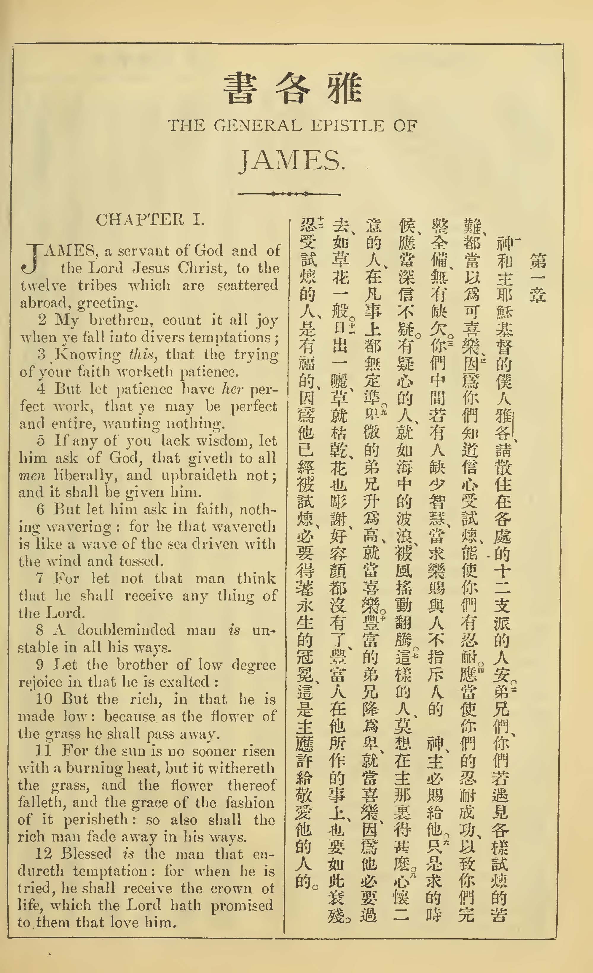 1902年新約全書(中英對照) 雅各書 1 章 1 節到 1 章 12 節