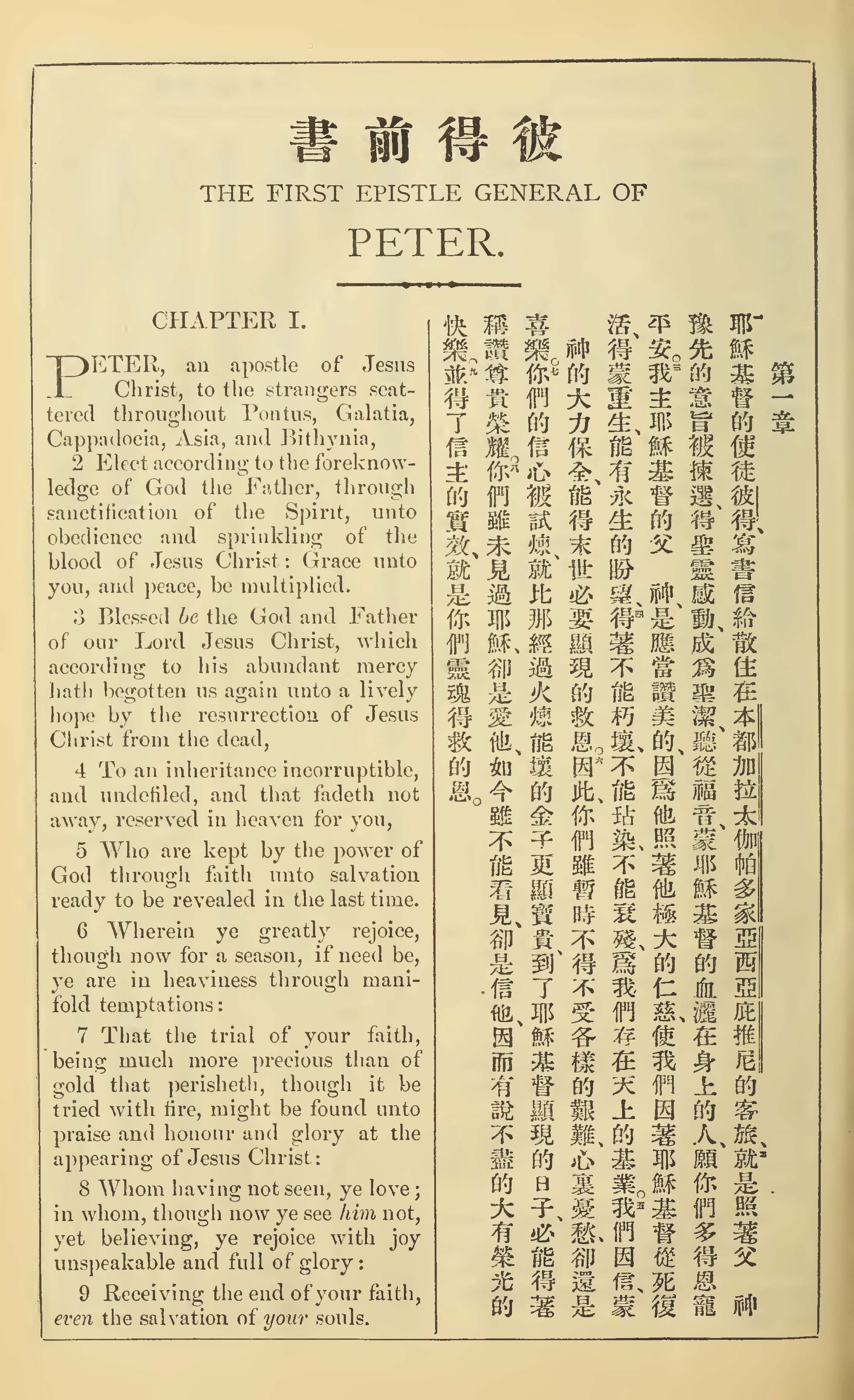 1902年新約全書(中英對照) 彼得前書 1 章 1 節到 1 章 9 節