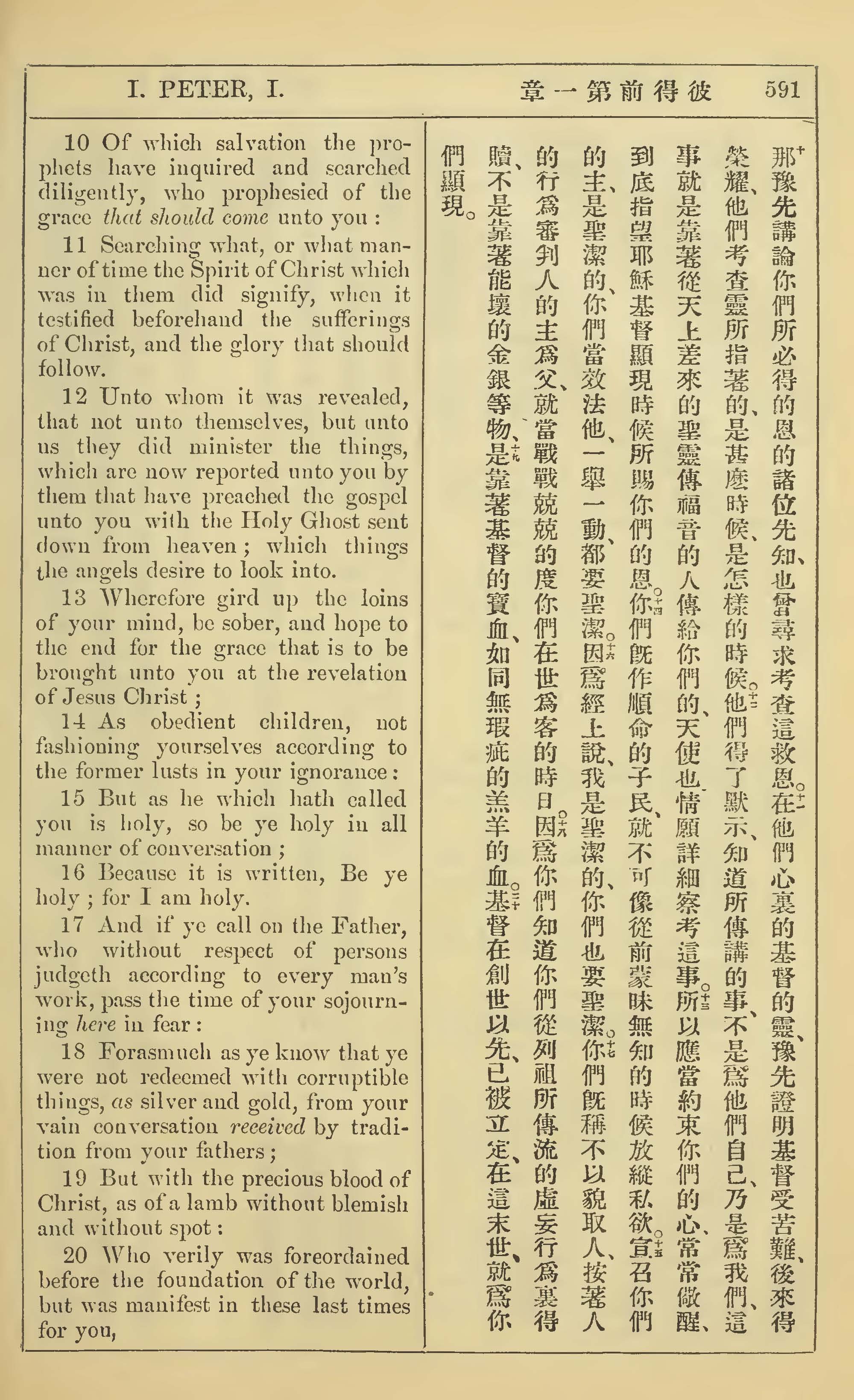 1902年新約全書(中英對照) 彼得前書 1 章 10 節到 1 章 20 節