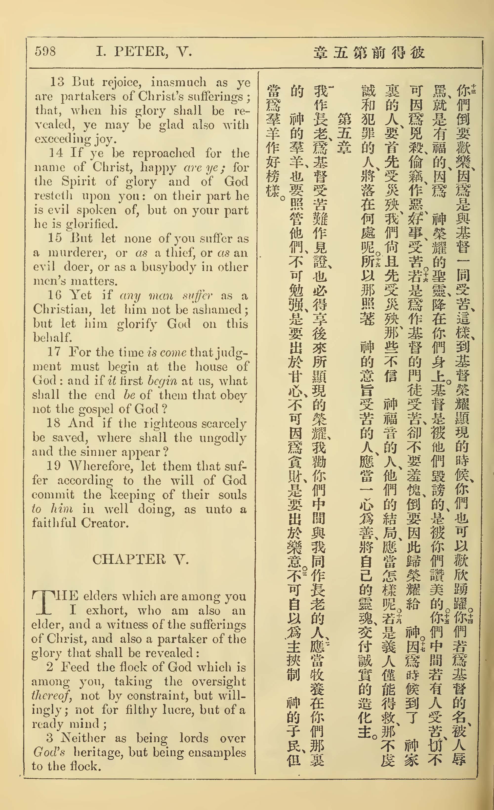 1902年新約全書(中英對照) 彼得前書 4 章 13 節到 5 章 3 節