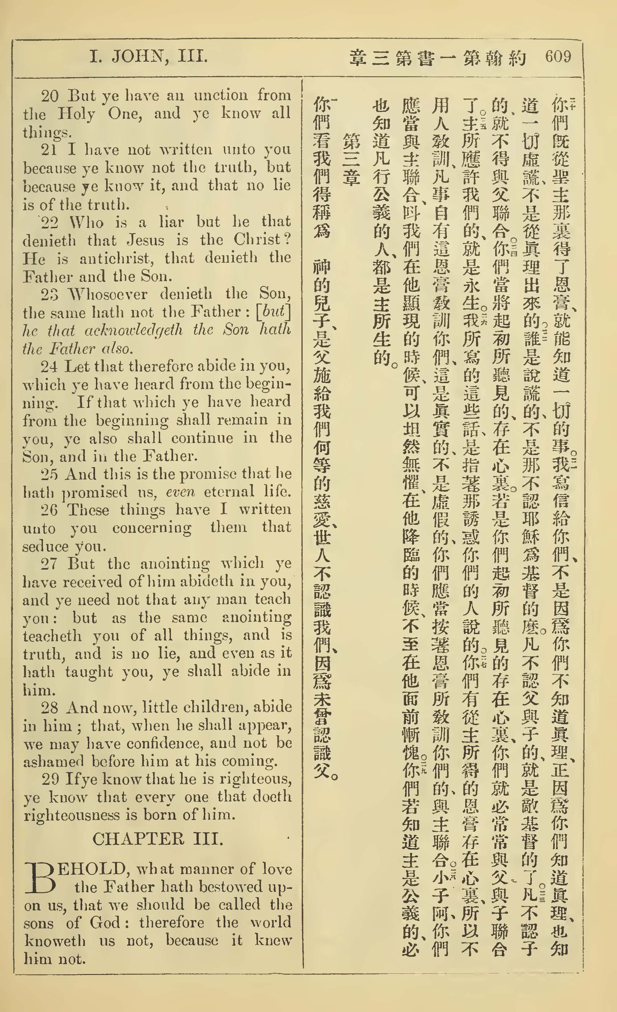 1902年新約全書(中英對照) 約翰一書 2 章 20 節到 3 章 1 節