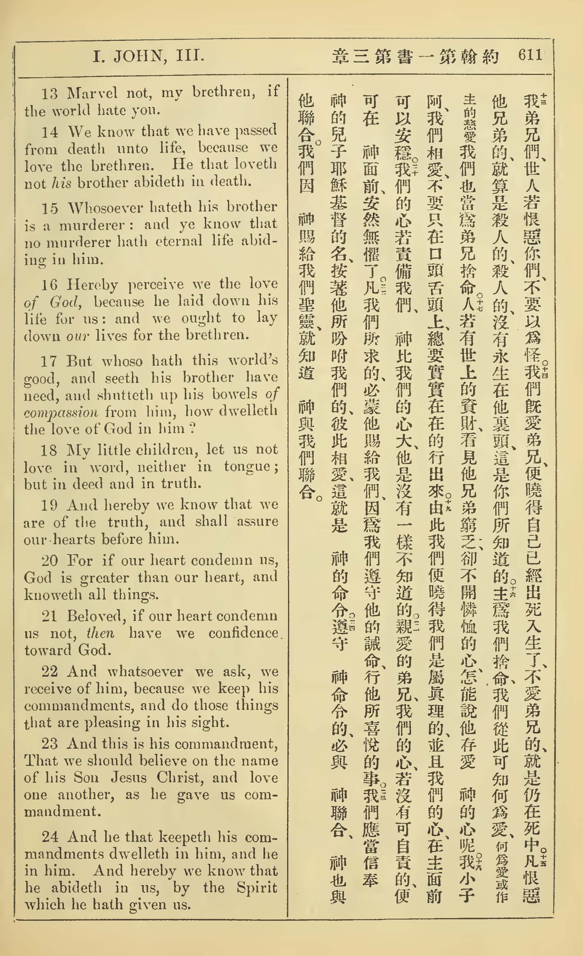 1902年新約全書(中英對照) 約翰一書 3 章 13 節到 3 章 24 節