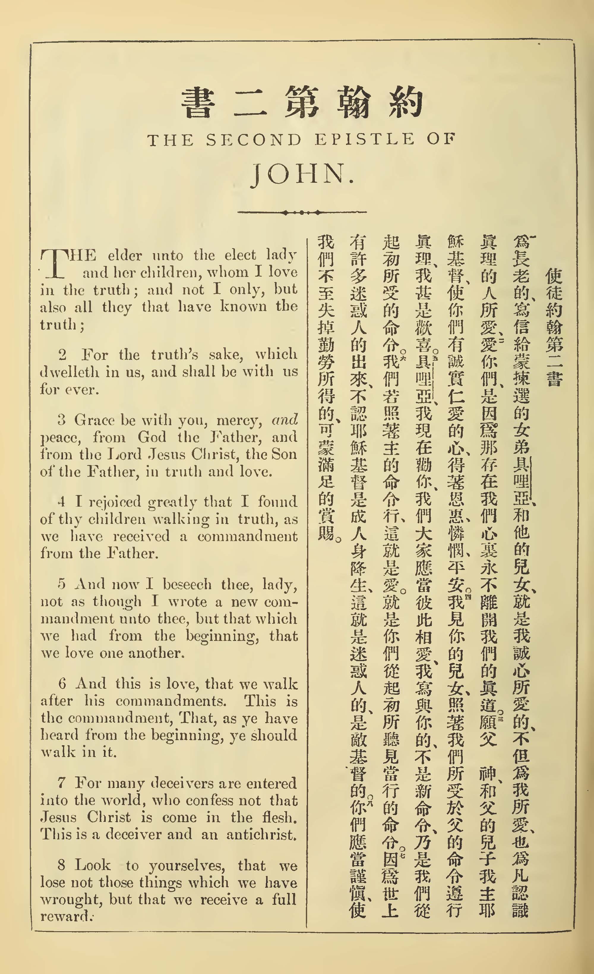 1902年新約全書(中英對照) 約翰二書 1 章 1 節到 1 章 8 節
