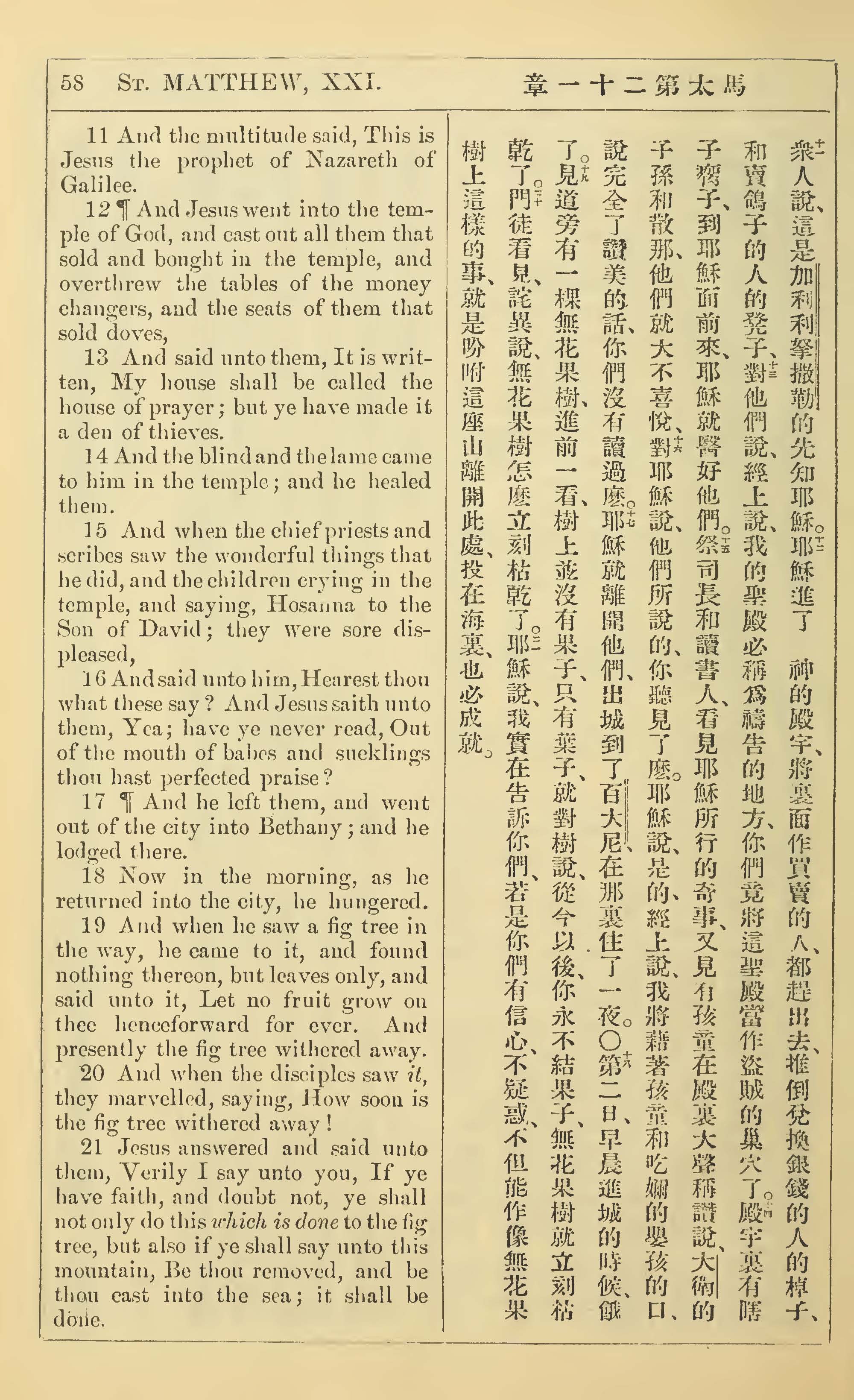 1902年新約全書(中英對照) 馬太福音 21 章 11 節到 21 章 21 節