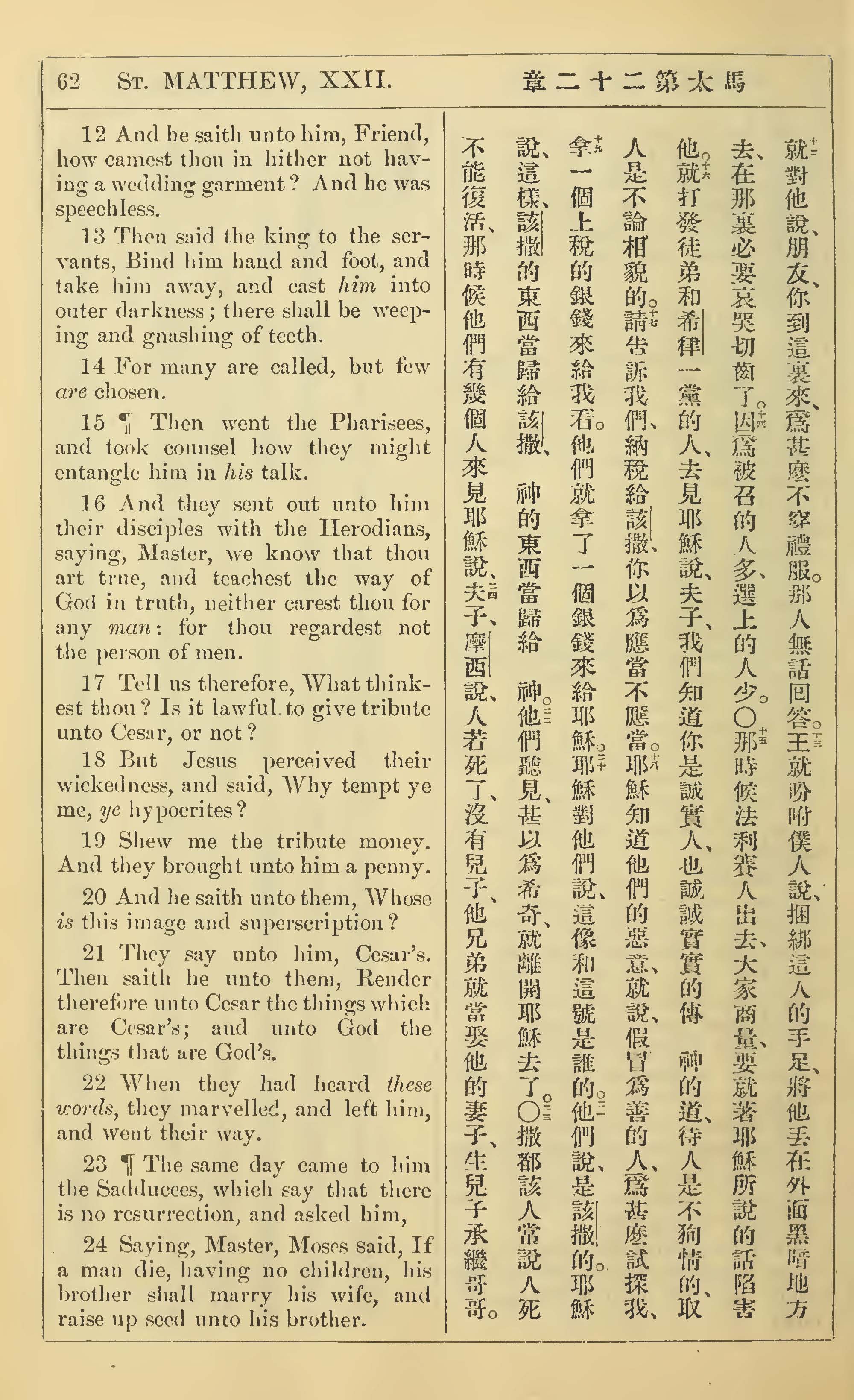 1902年新約全書(中英對照) 馬太福音 22 章 12 節到 22 章 24 節