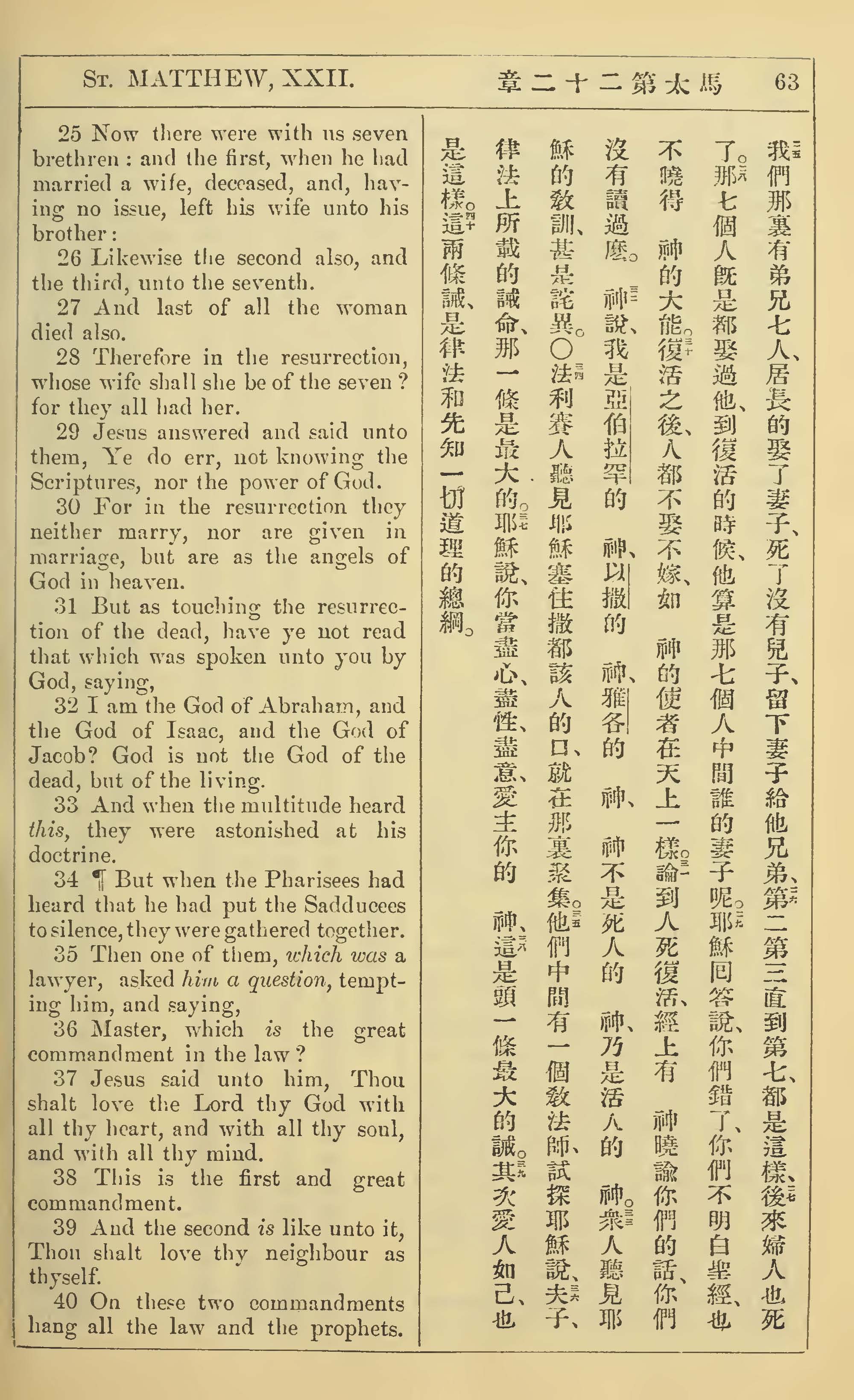 1902年新約全書(中英對照) 馬太福音 22 章 25 節到 22 章 40 節