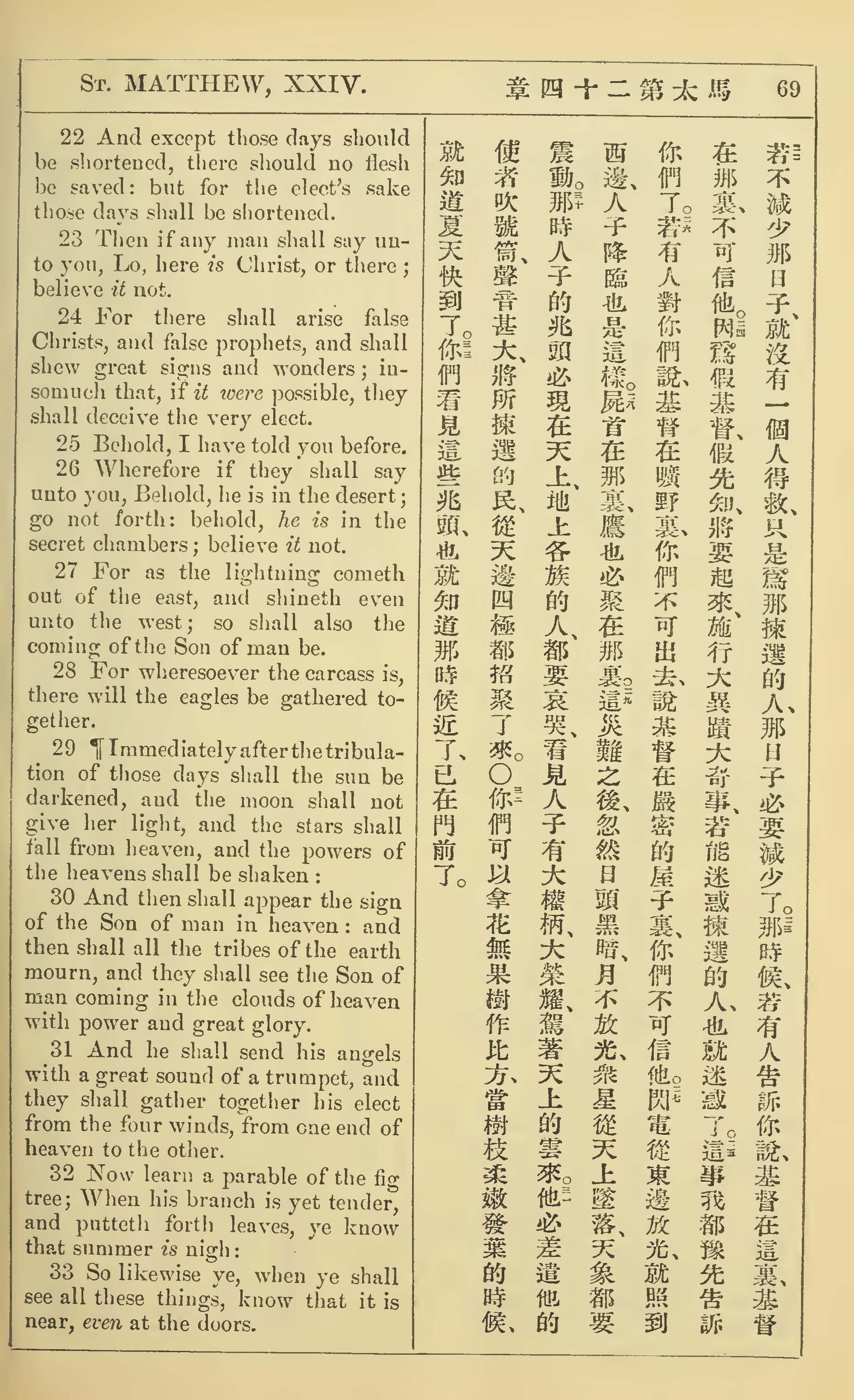 1902年新約全書(中英對照) 馬太福音 24 章 22 節到 24 章 33 節