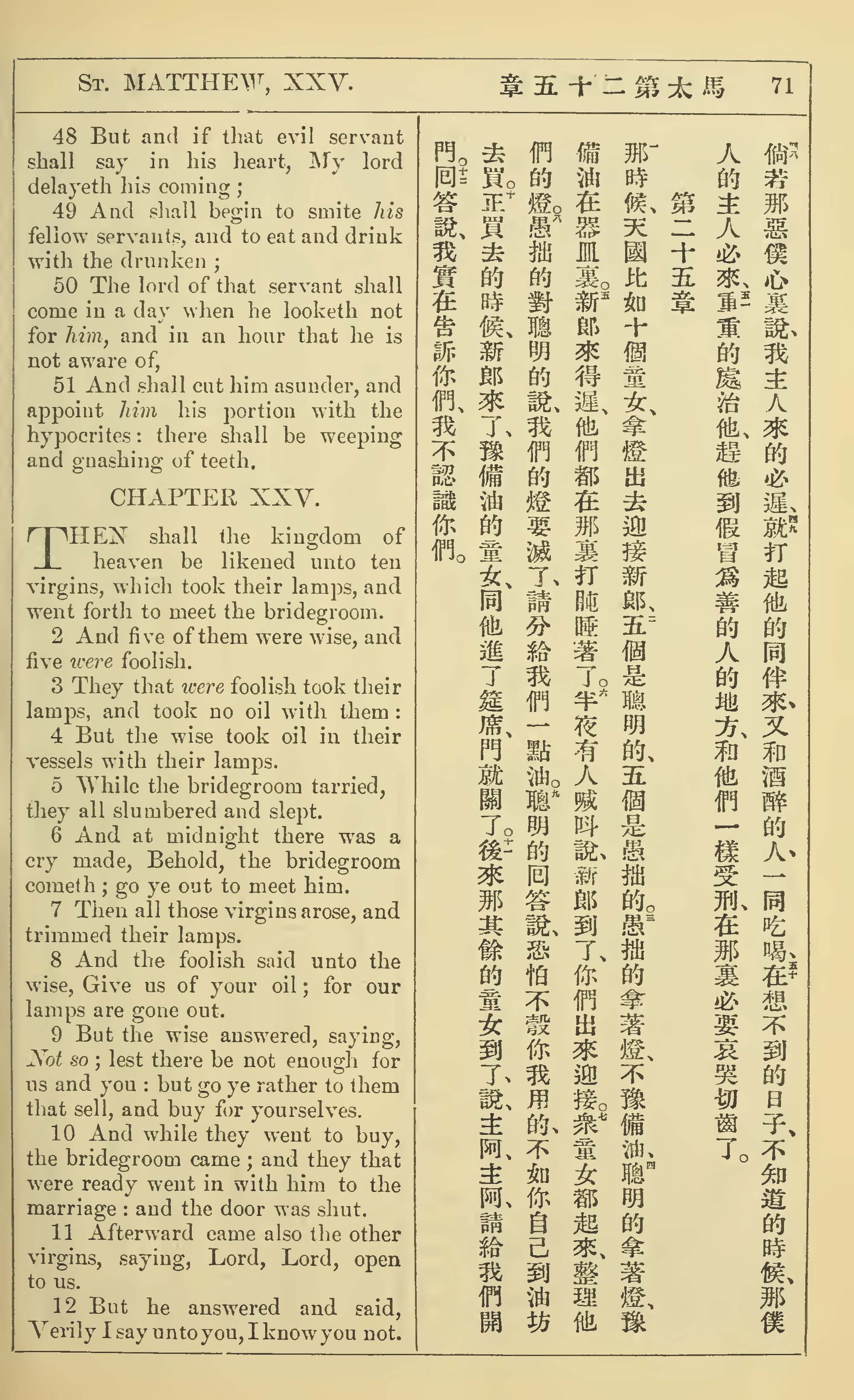 1902年新約全書(中英對照) 馬太福音 24 章 48 節到 25 章 12 節