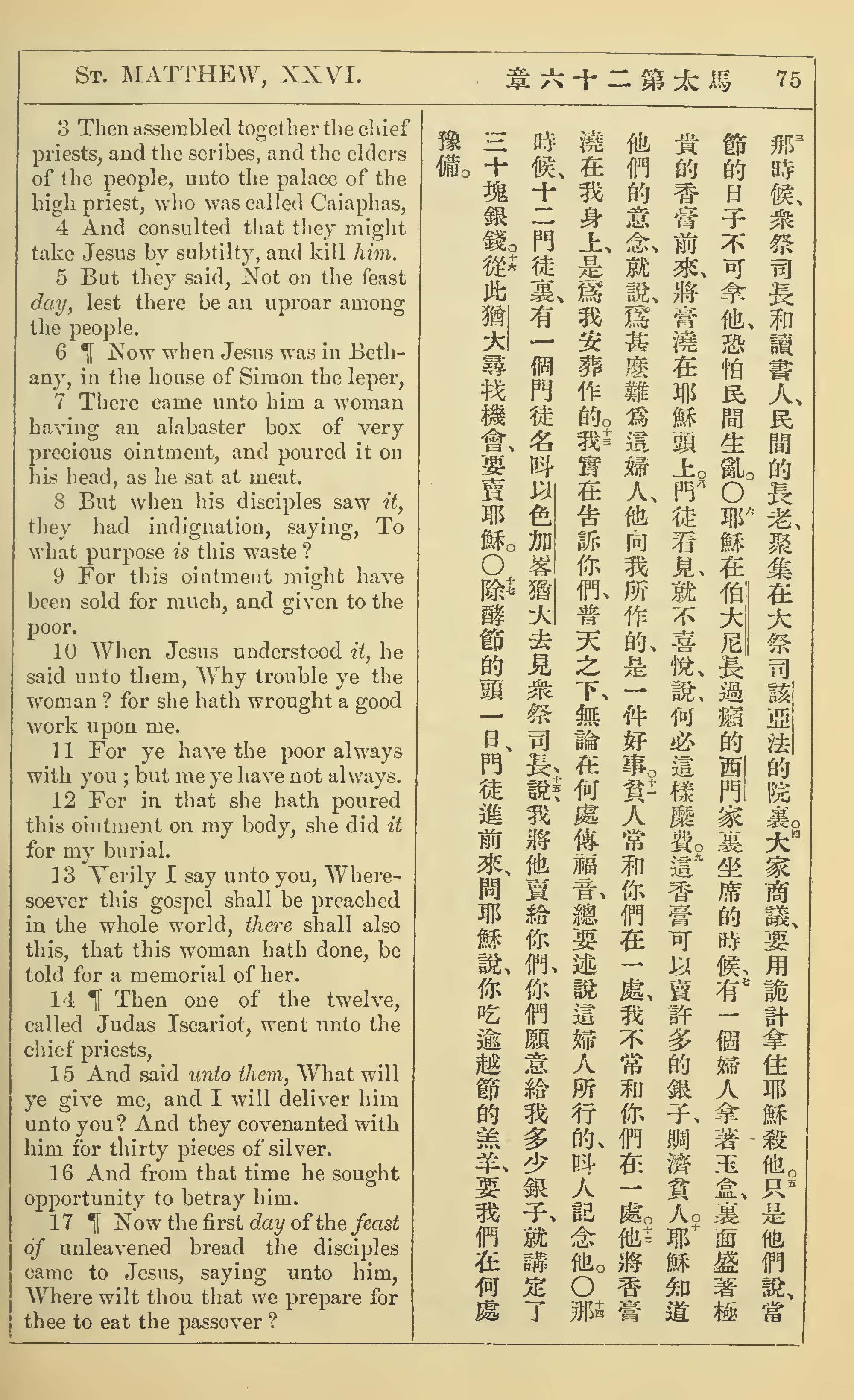 1902年新約全書(中英對照) 馬太福音 26 章 3 節到 26 章 17 節