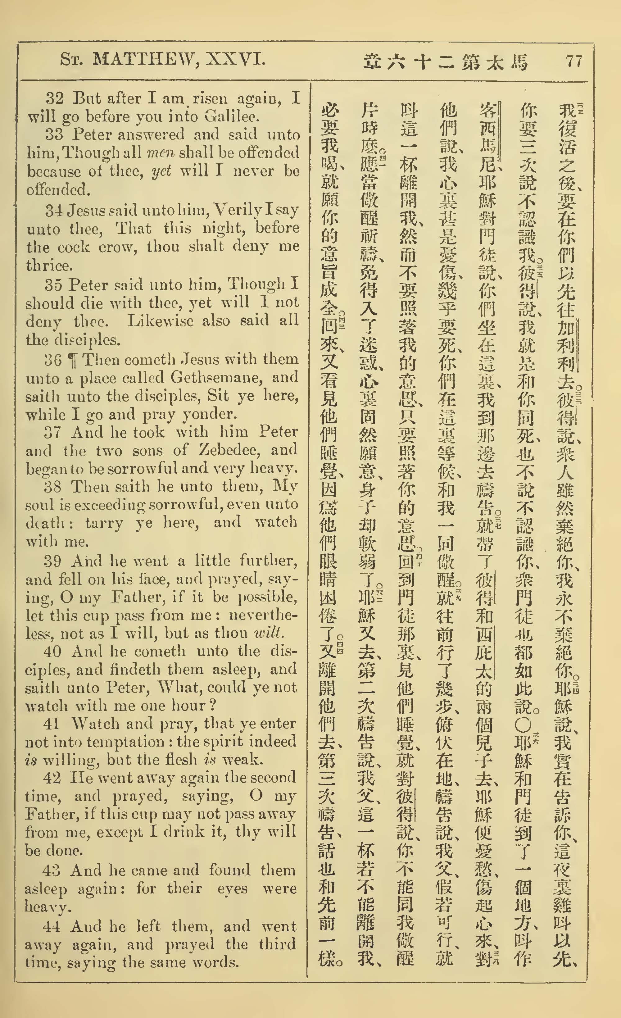 1902年新約全書(中英對照) 馬太福音 26 章 32 節到 26 章 44 節