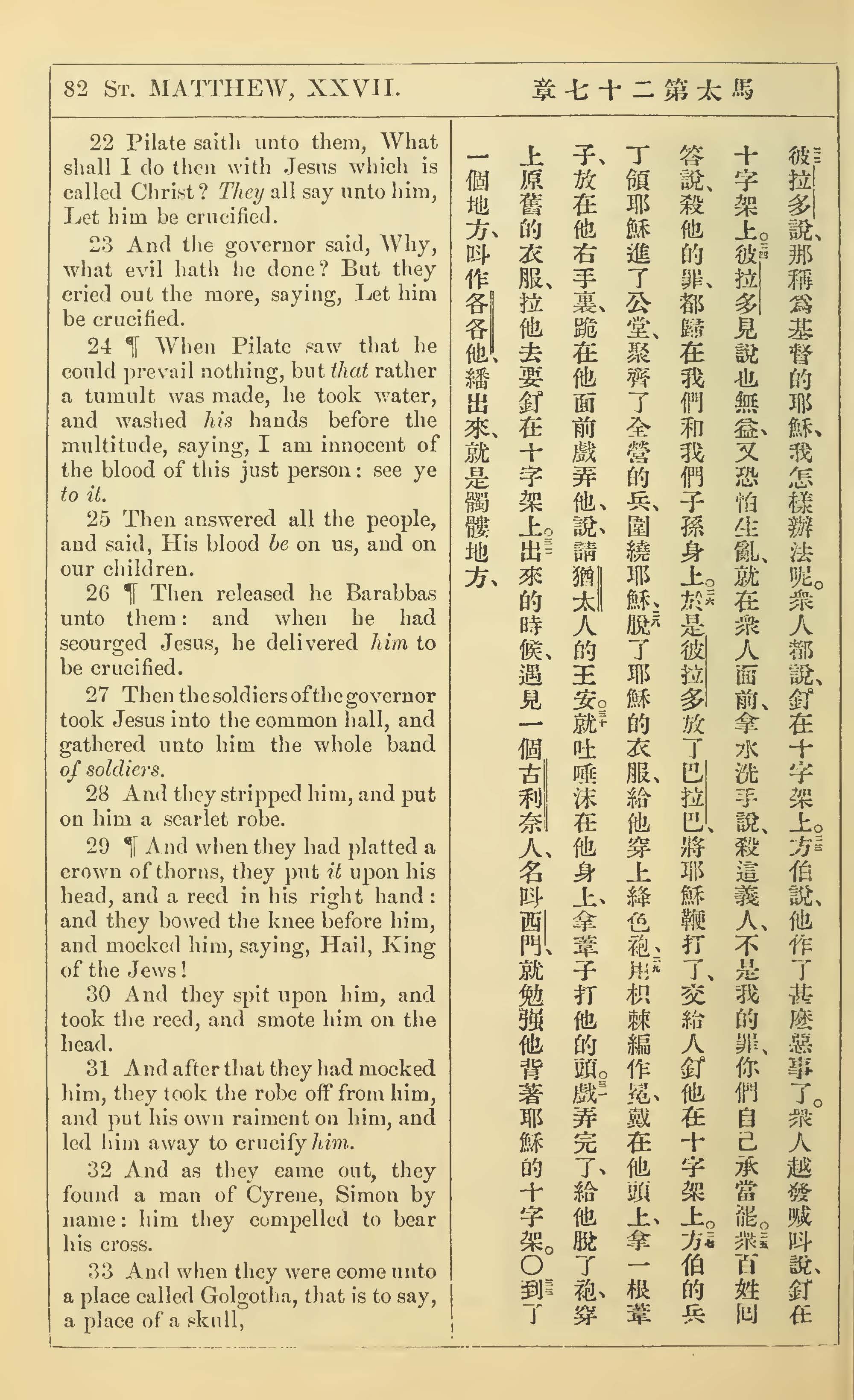 1902年新約全書(中英對照) 馬太福音 27 章 22 節到 27 章 33 節