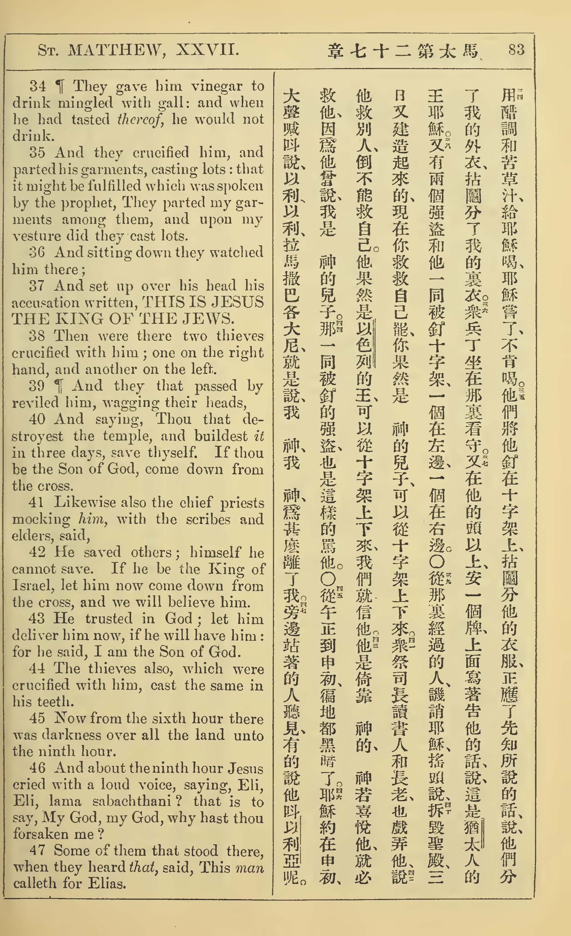 1902年新約全書(中英對照) 馬太福音 27 章 34 節到 27 章 47 節