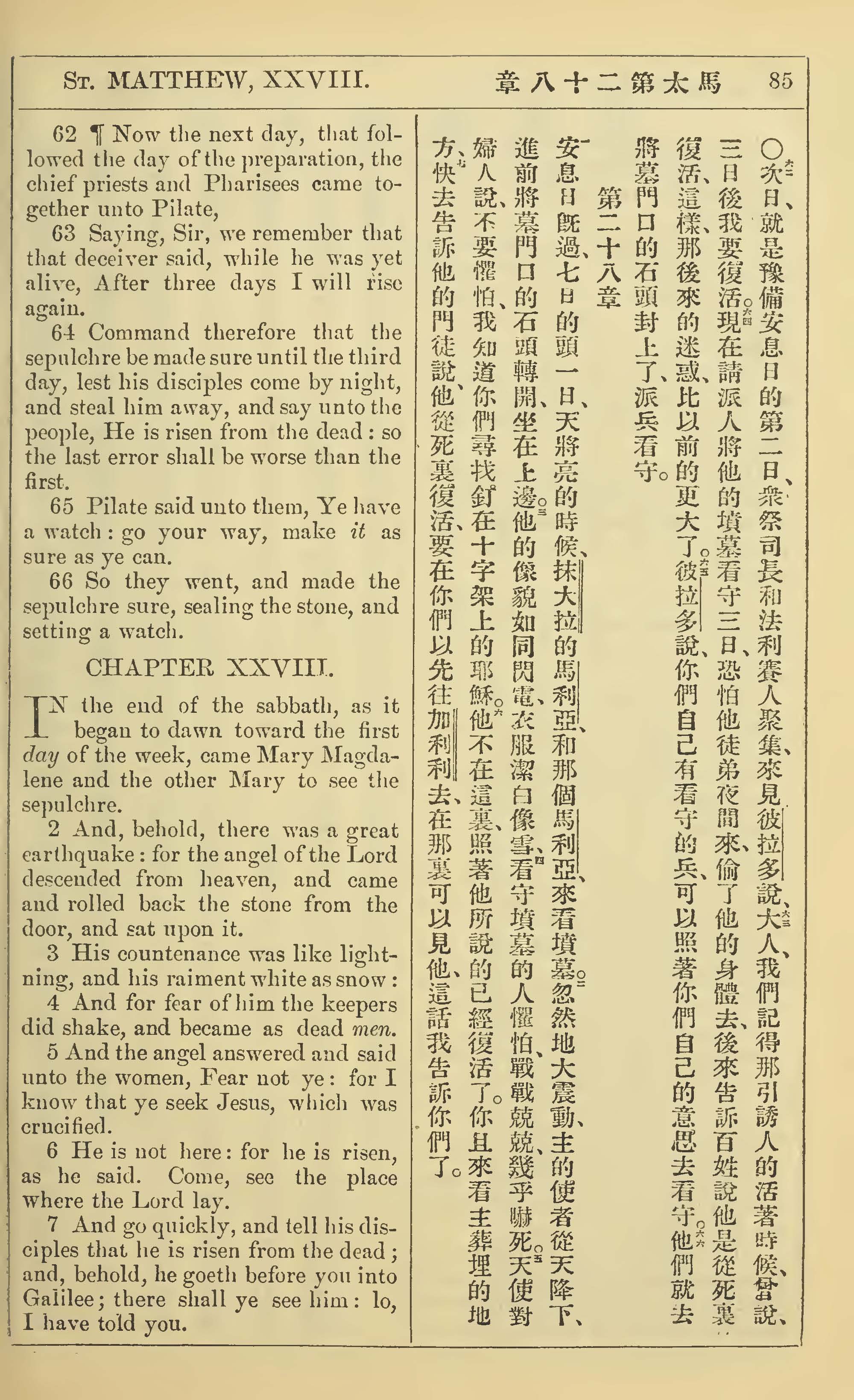 1902年新約全書(中英對照) 馬太福音 27 章 62 節到 28 章 7 節