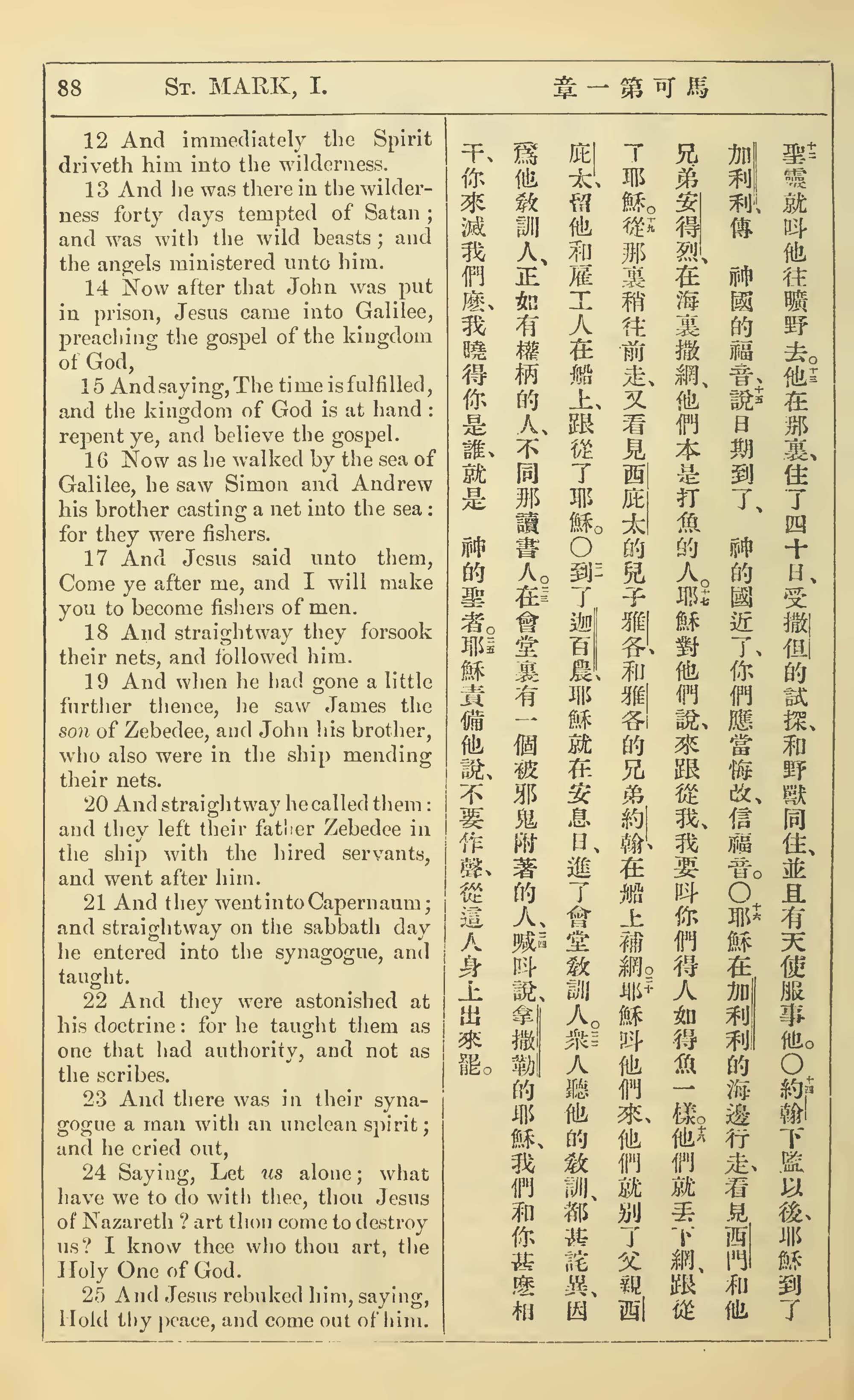1902年新約全書(中英對照) 馬可福音 1 章 13 節到 1 章 25 節