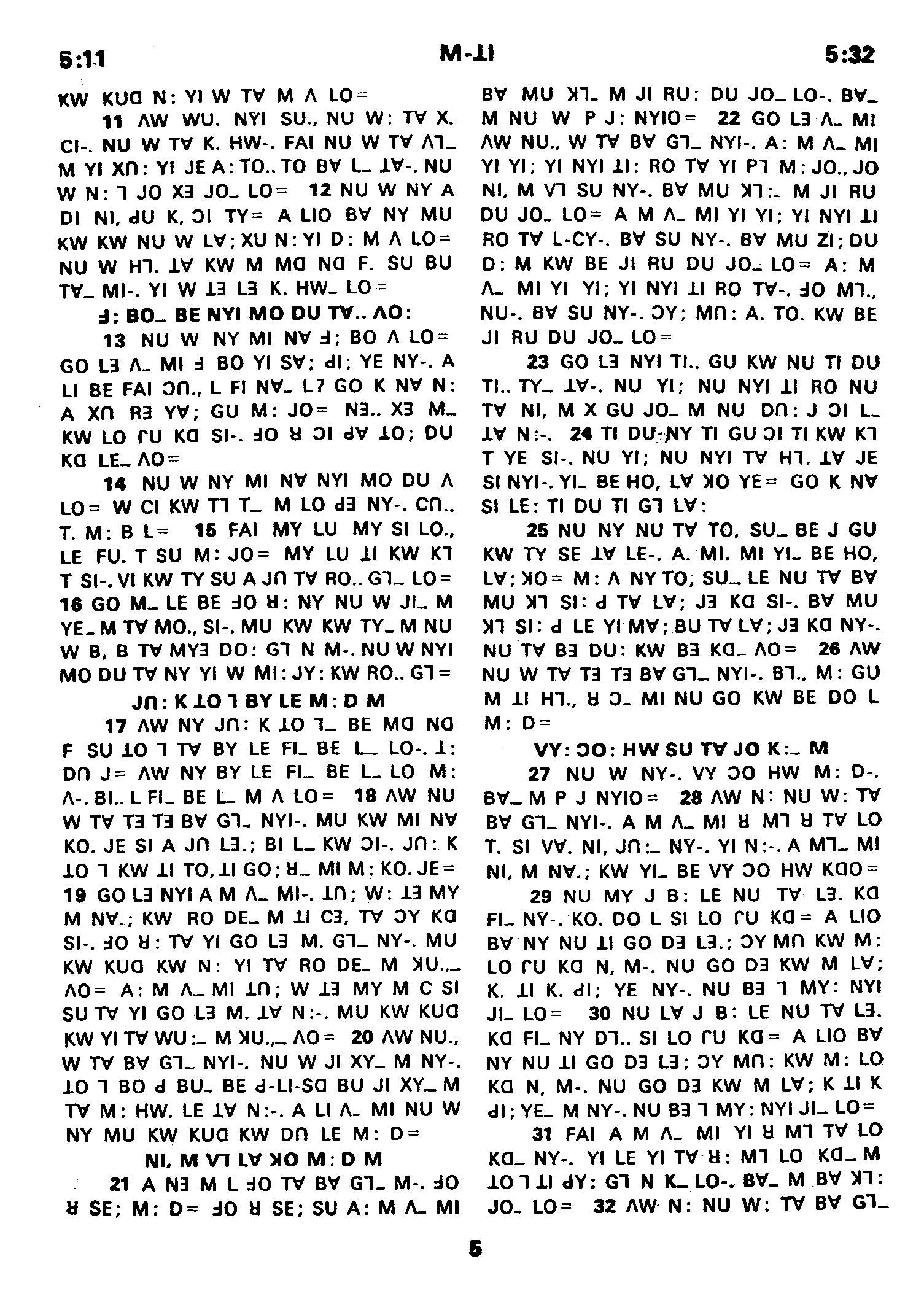 1980年傈僳語聖經全書 馬太福音 5 章 11 節到 5 章 32 節