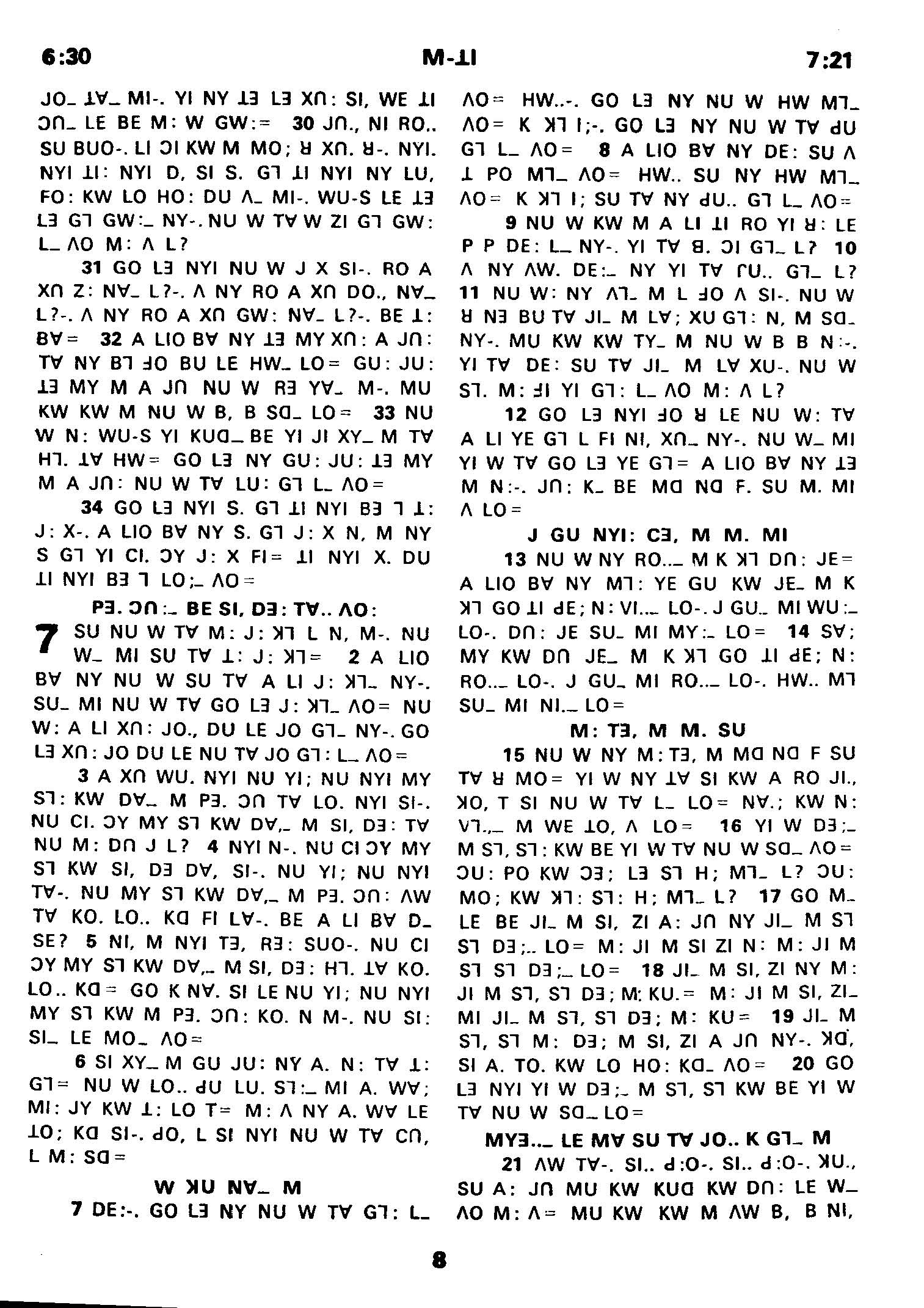 1980年傈僳語聖經全書 馬太福音 6 章 30 節到 7 章 21 節
