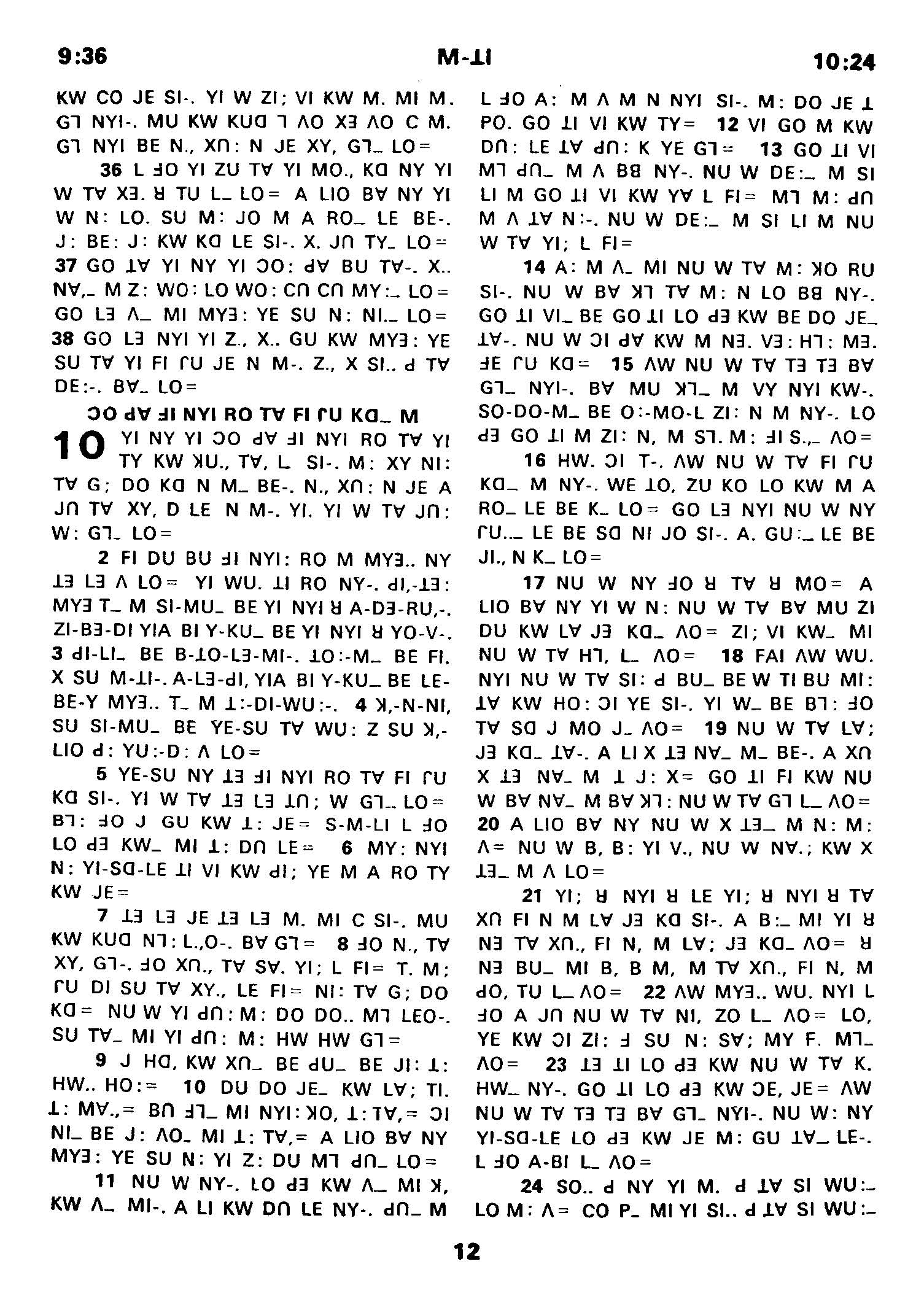 1980年傈僳語聖經全書 馬太福音 9 章 36 節到 10 章 24 節