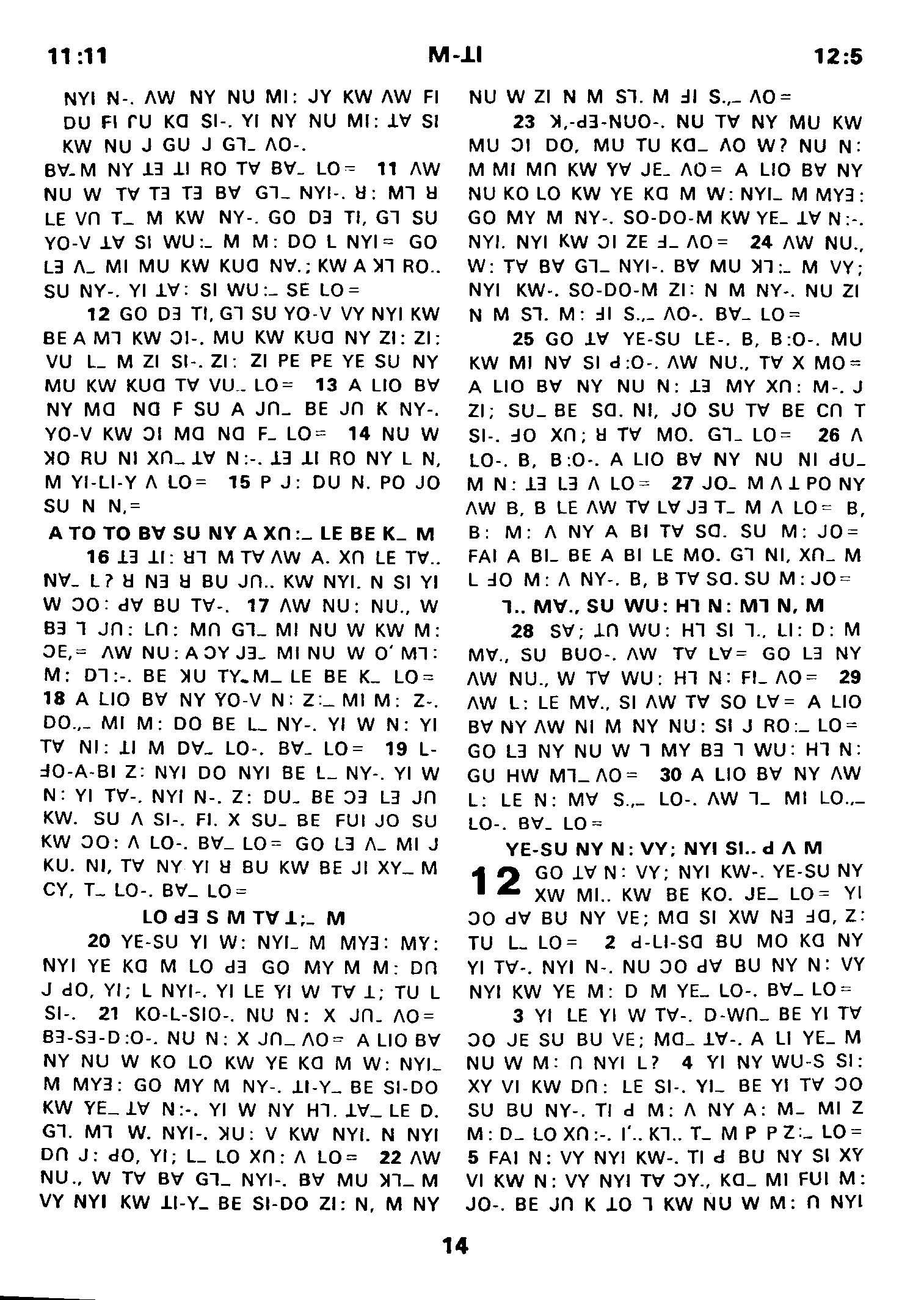 1980年傈僳語聖經全書 馬太福音 11 章 11 節到 12 章 5 節
