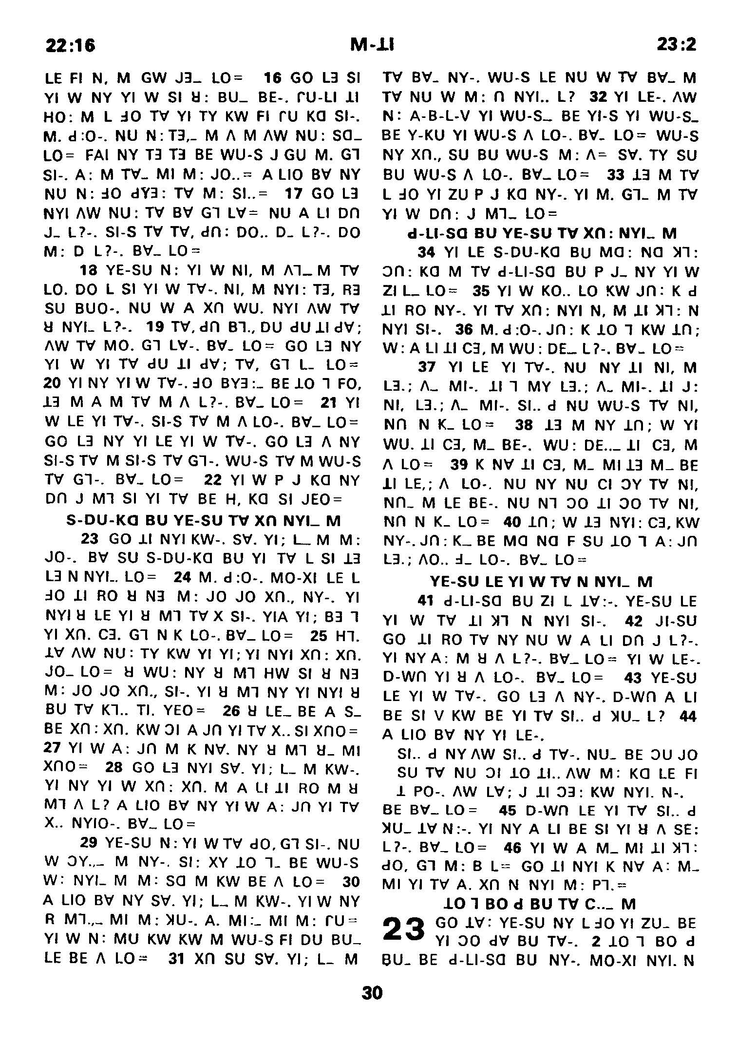 1980年傈僳語聖經全書 馬太福音 22 章 16 節到 23 章 2 節