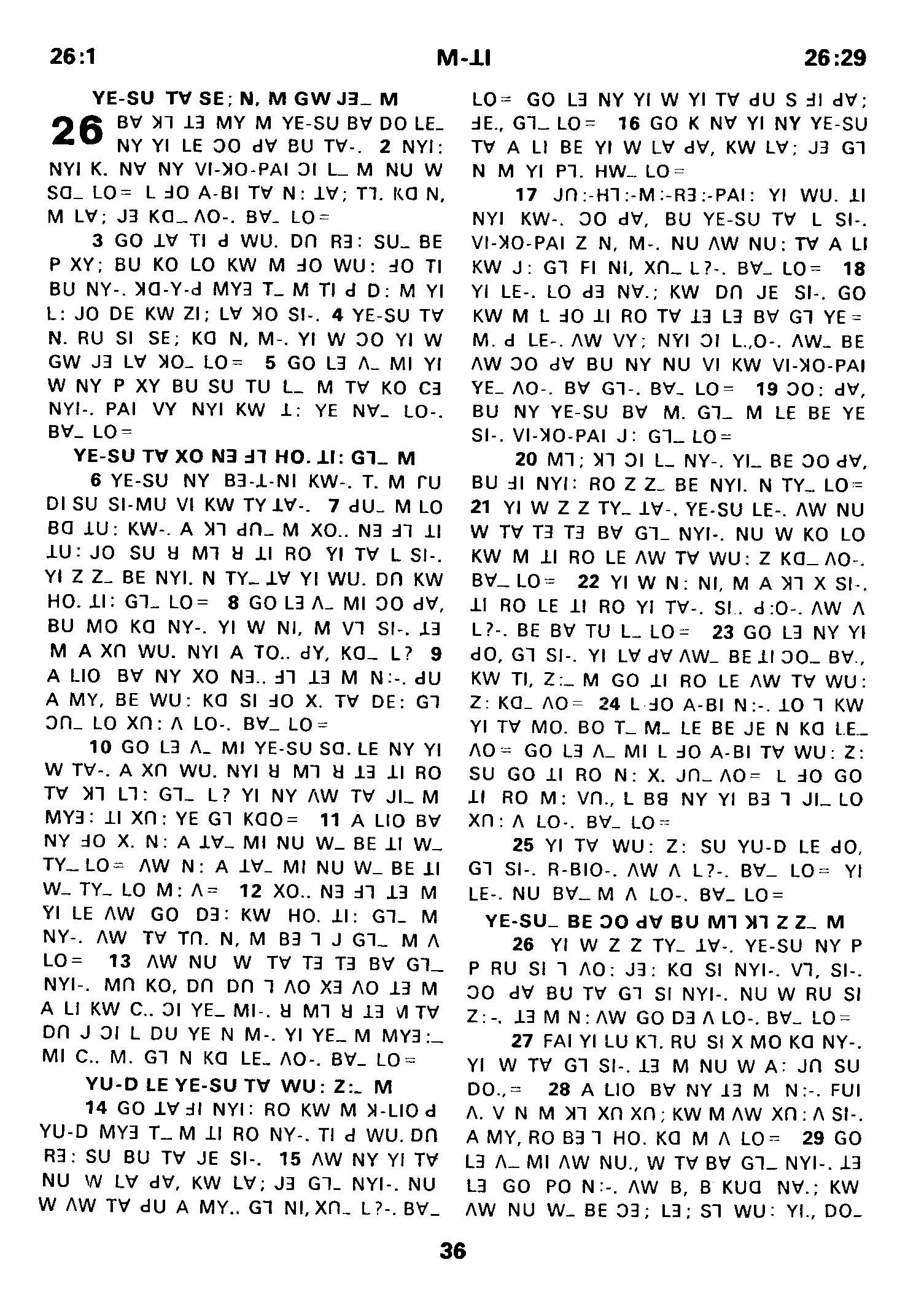 1980年傈僳語聖經全書 馬太福音 26 章 1 節到 26 章 29 節