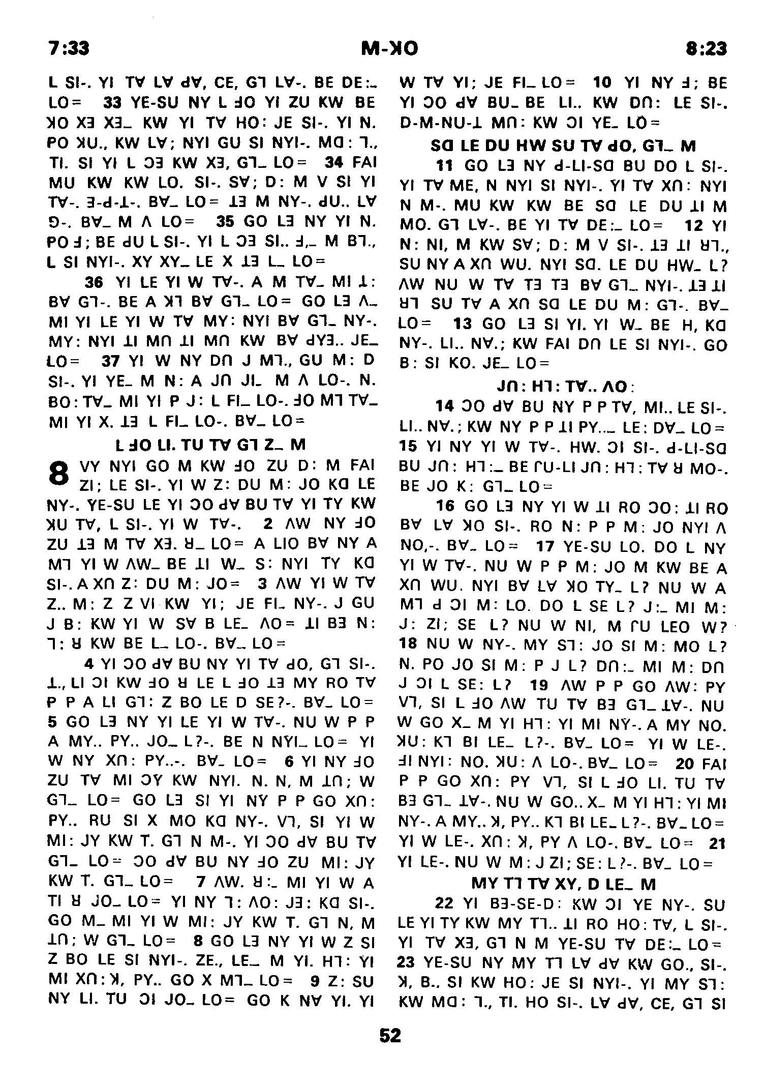 1980年傈僳語聖經全書 馬可福音 7 章 33 節到 8 章 23 節