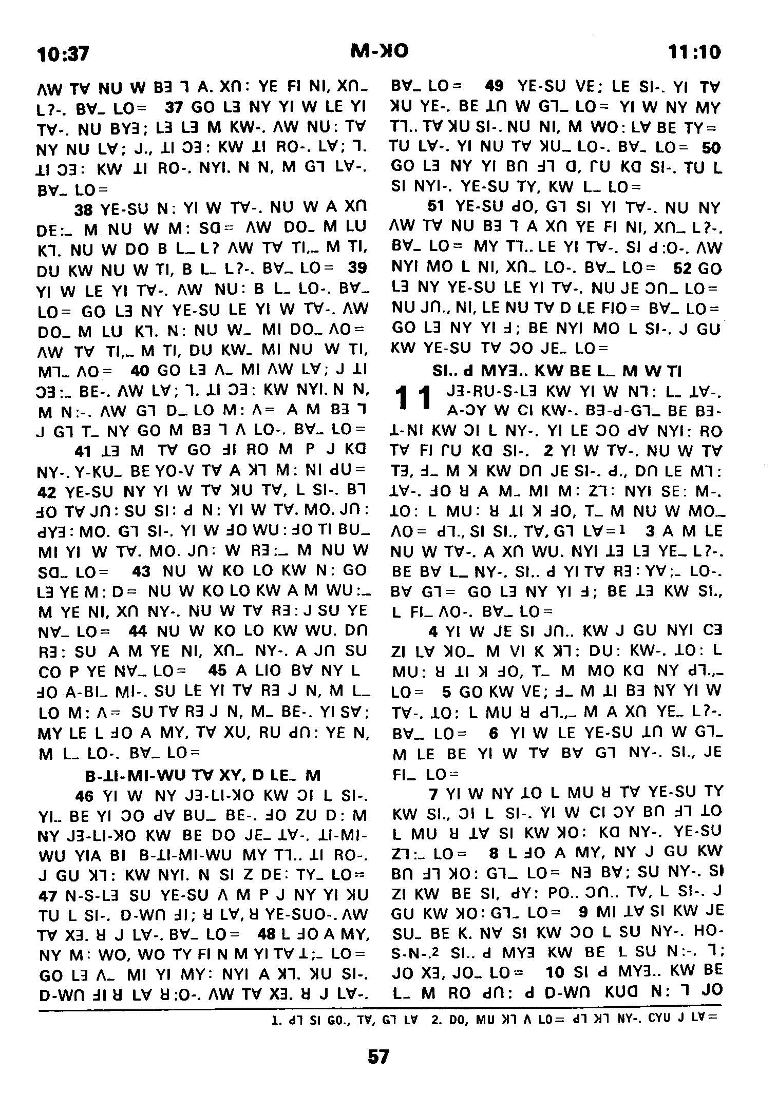 1980年傈僳語聖經全書 馬可福音 10 章 37 節到 11 章 10 節