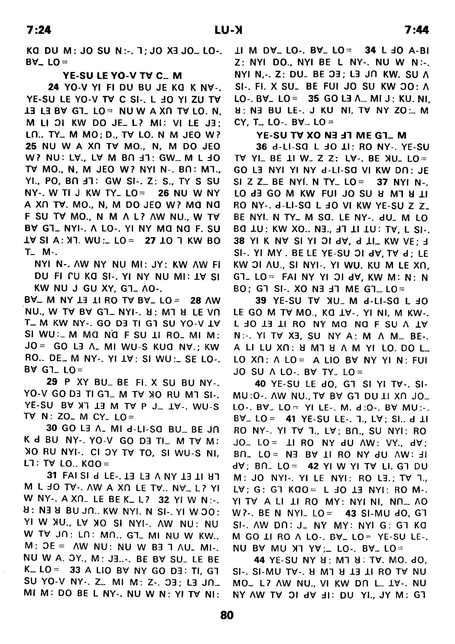 1980年傈僳語聖經全書 路加福音 7 章 24 節到 7 章 44 節