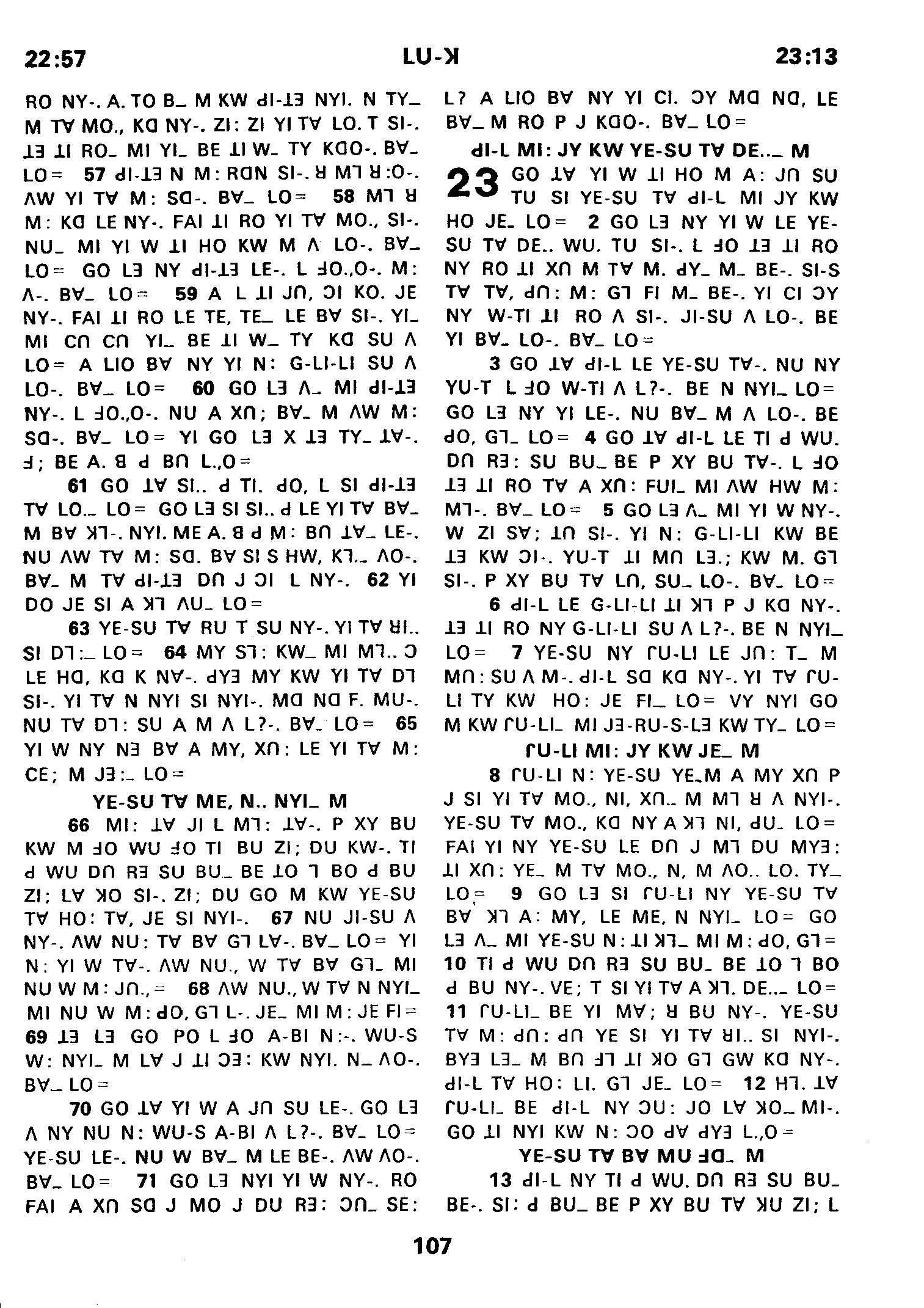 1980年傈僳語聖經全書 路加福音 22 章 57 節到 23 章 13 節