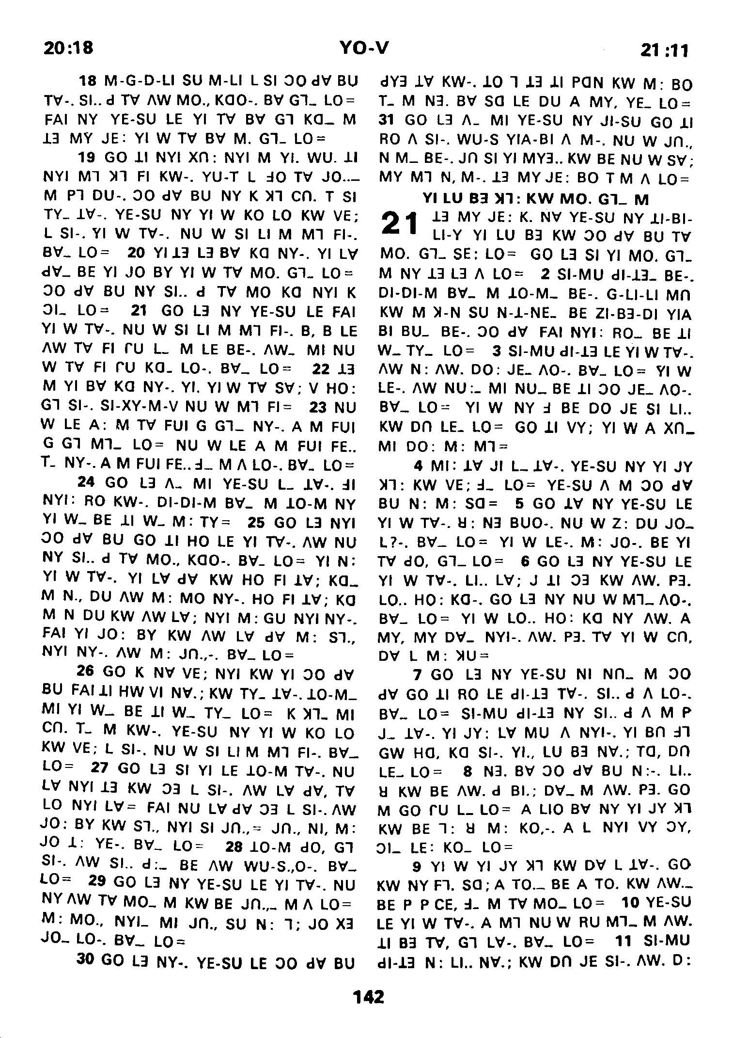 1980年傈僳語聖經全書 約翰福音 20 章 18 節到 21 章 11 節