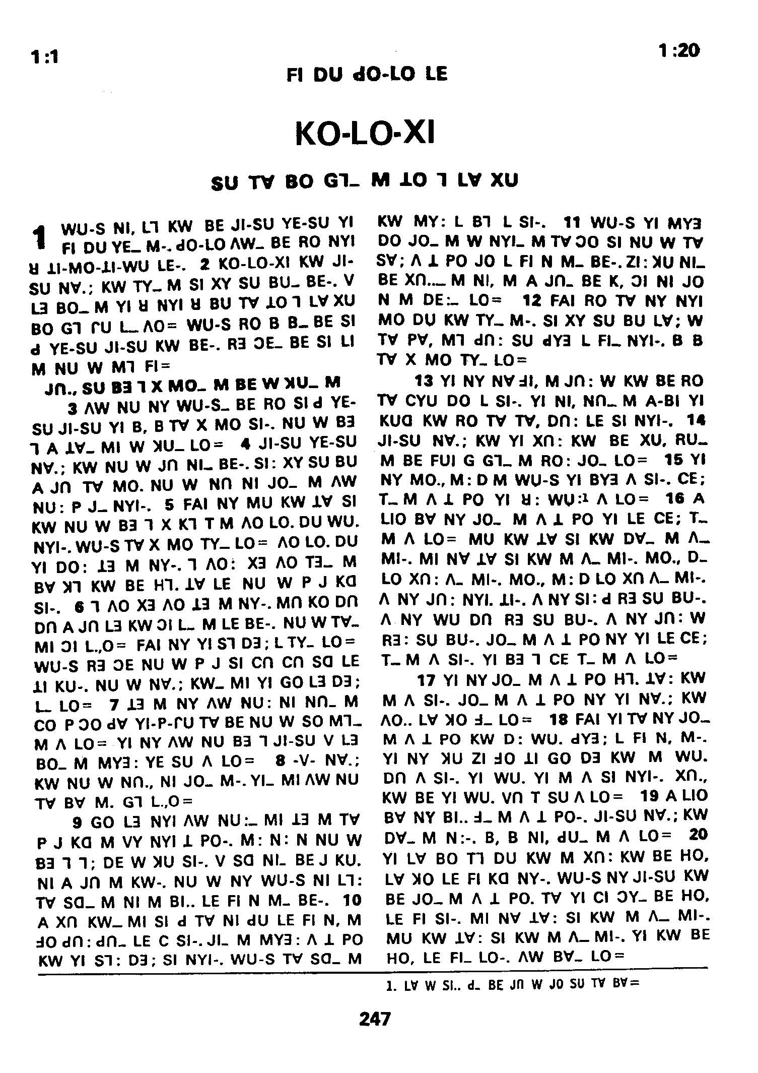 1980年傈僳語聖經全書 歌羅西書 1 章 1 節到 1 章 20 節
