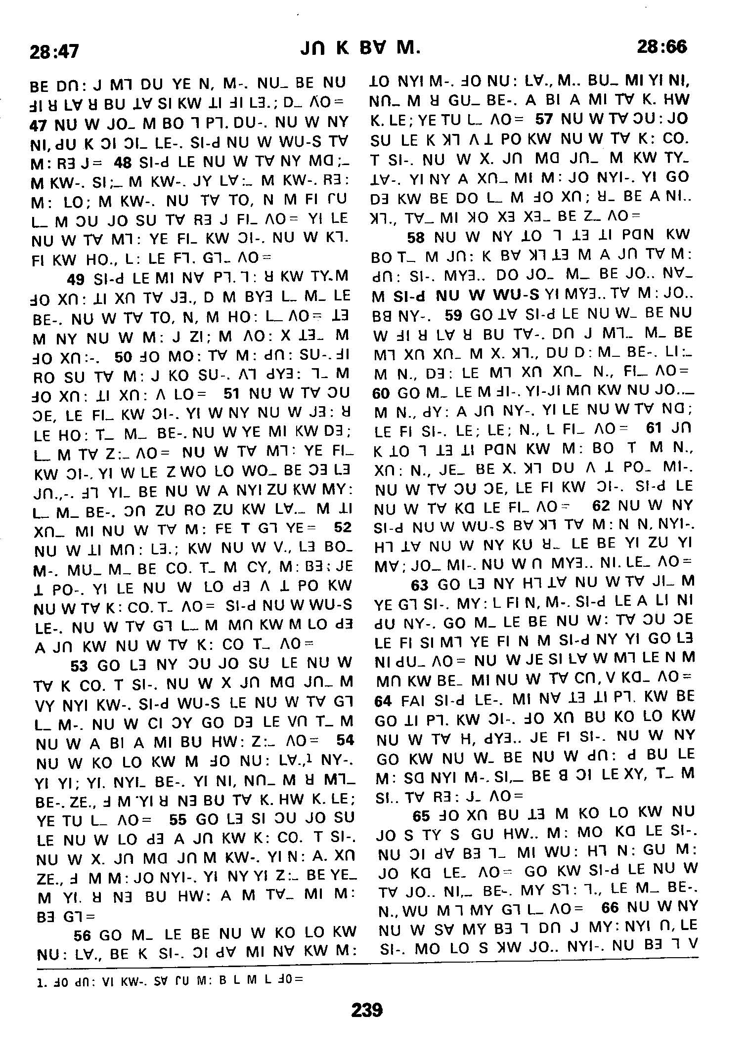1980年傈僳語聖經全書 申命記 28 章 47 節到 28 章 66 節
