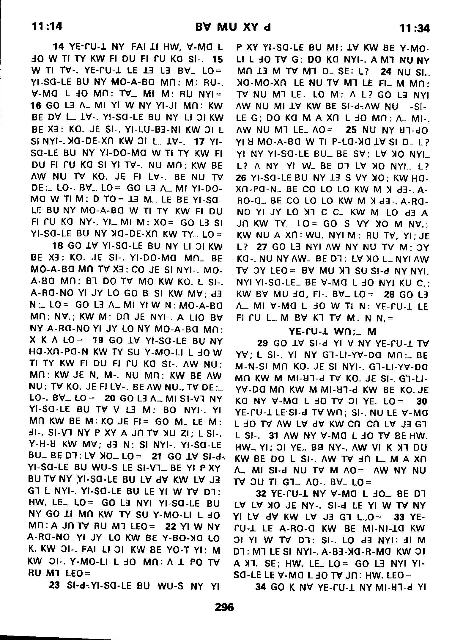 1980年傈僳語聖經全書 士師記 11 章 14 節到 11 章 34 節