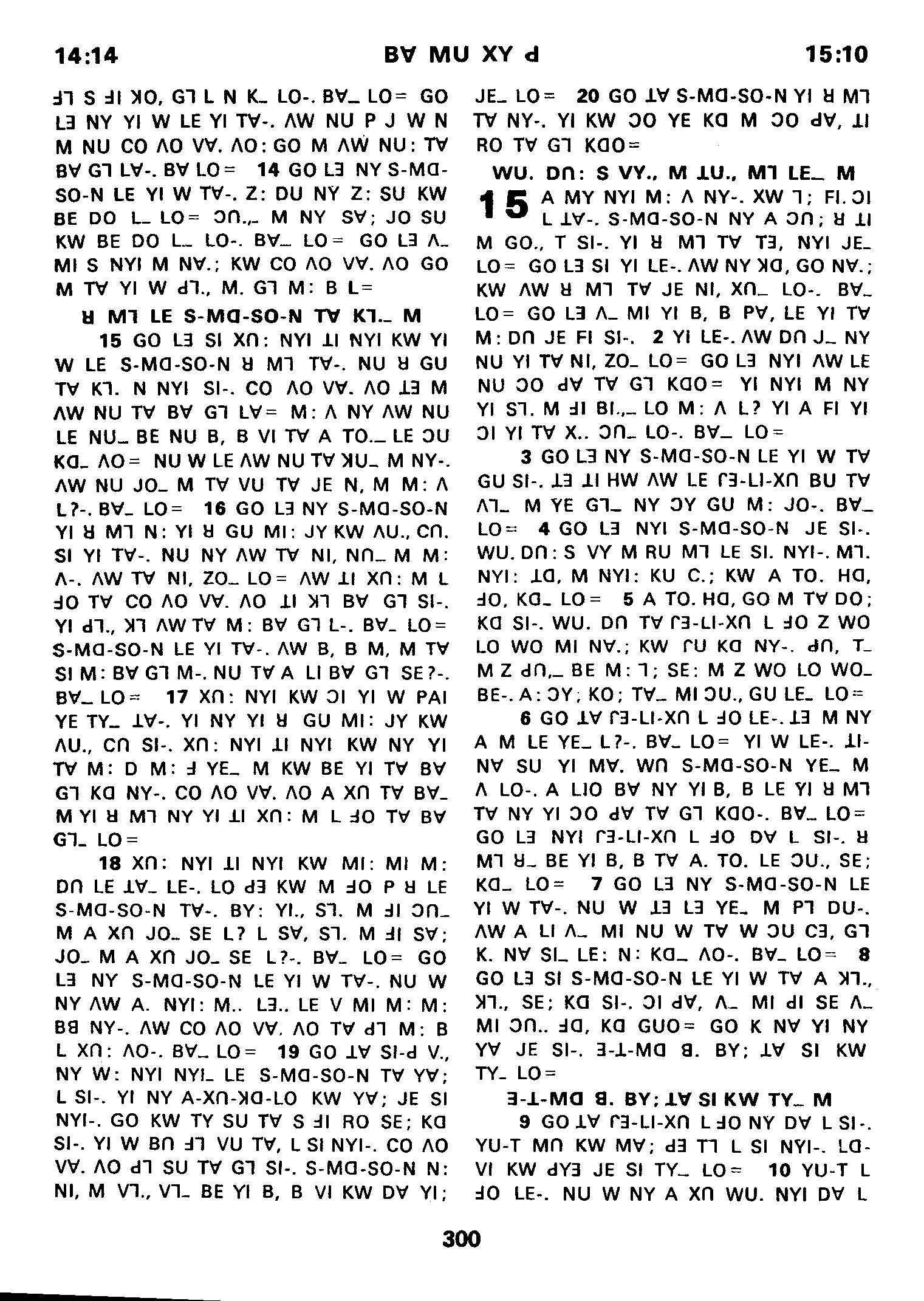 1980年傈僳語聖經全書 士師記 14 章 14 節到 15 章 10 節