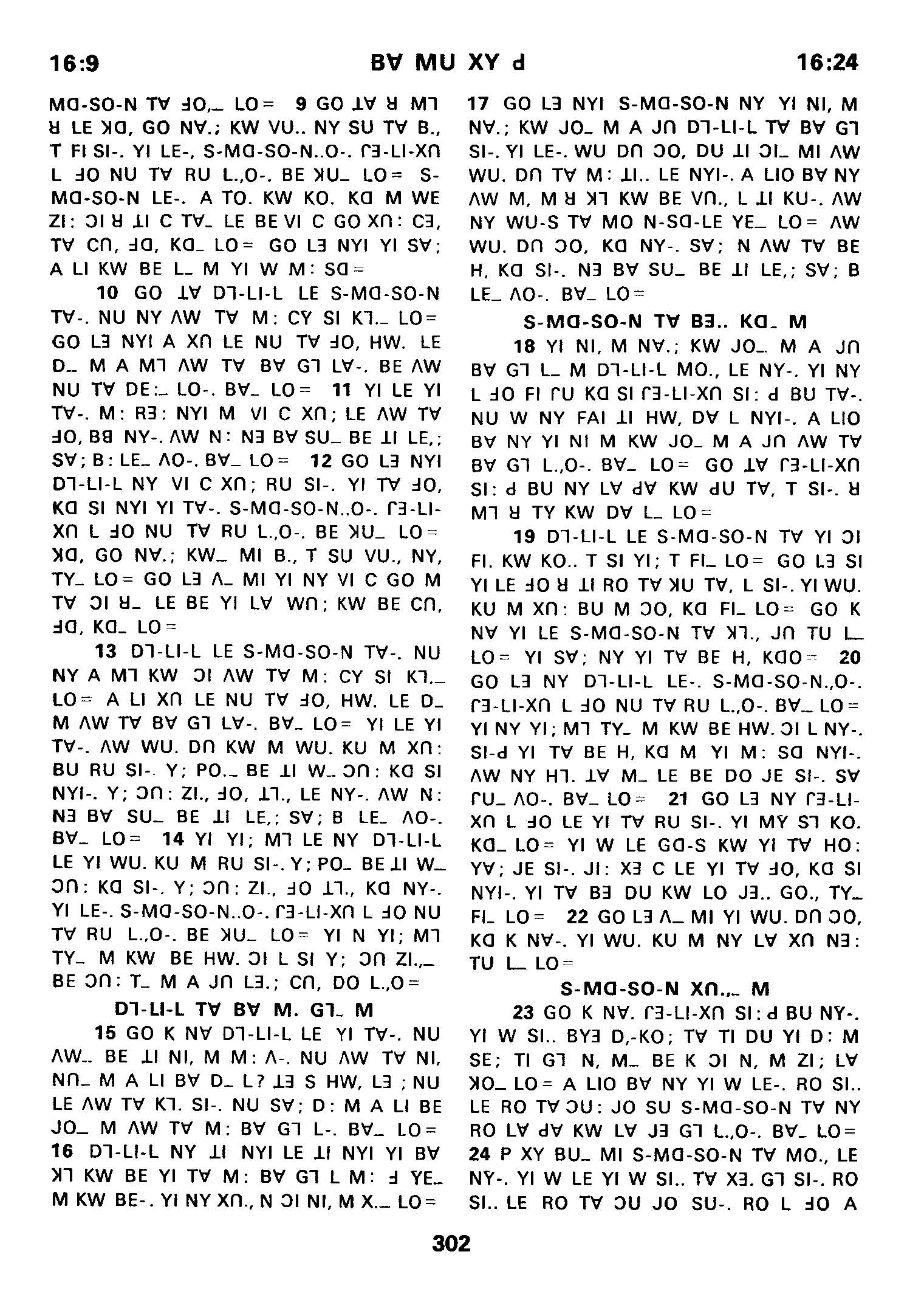 1980年傈僳語聖經全書 士師記 16 章 9 節到 16 章 24 節
