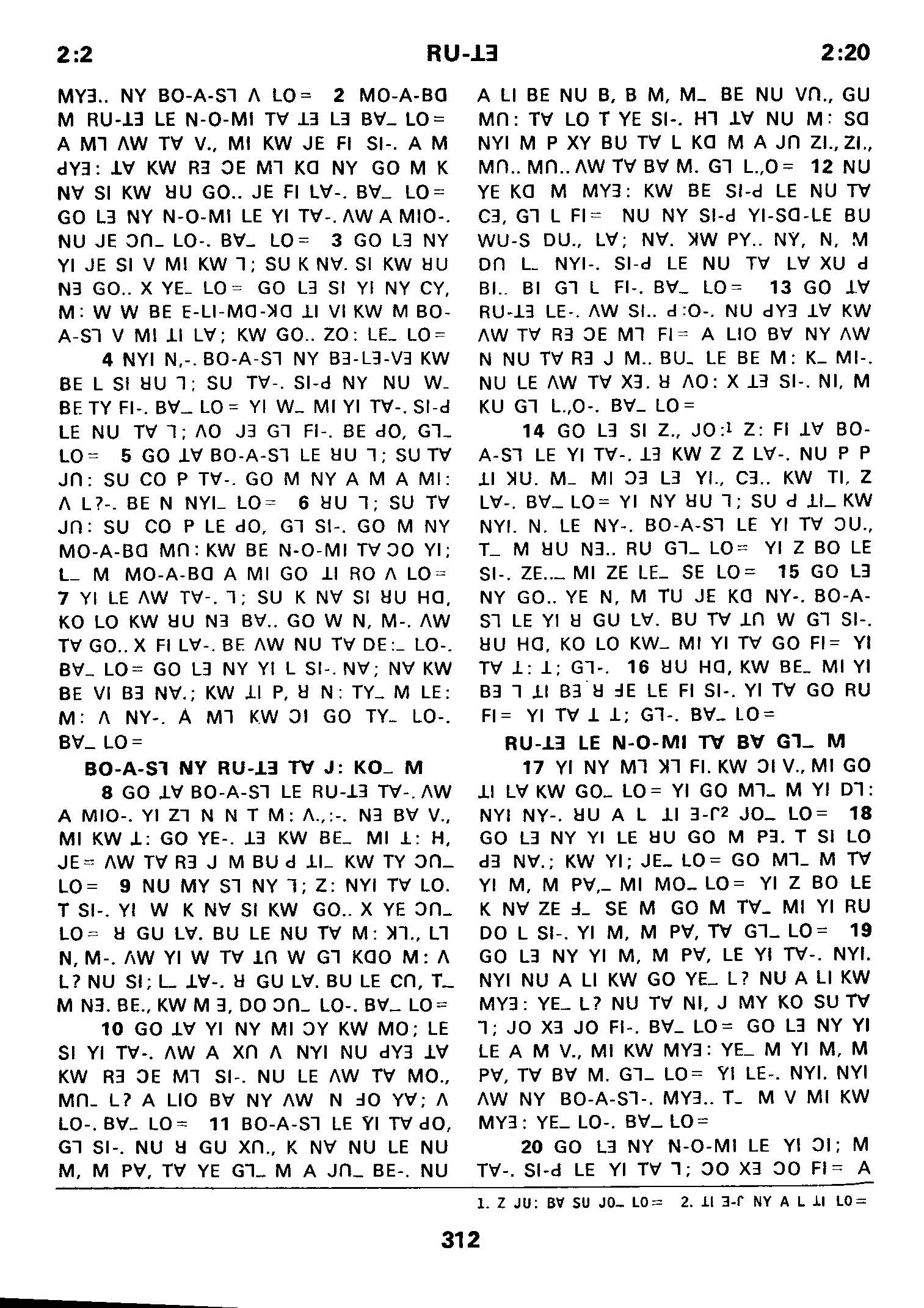 1980年傈僳語聖經全書 路得記 2 章 2 節到 2 章 20 節