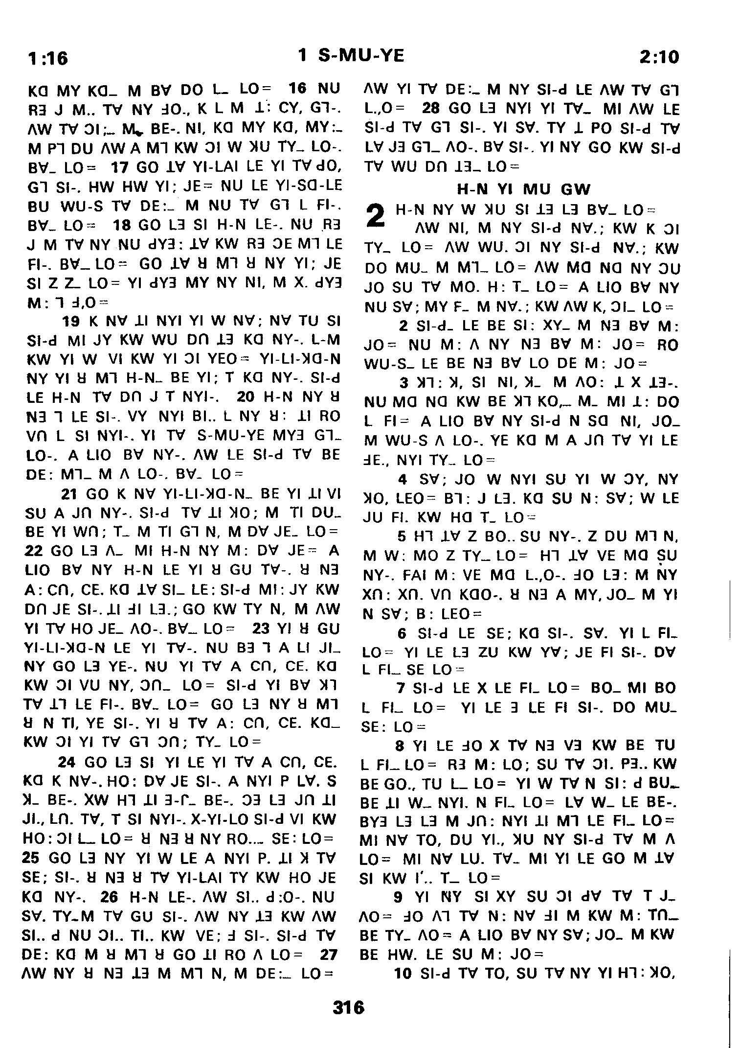 1980年傈僳語聖經全書 撒母耳記上 1 章 16 節到 2 章 10 節