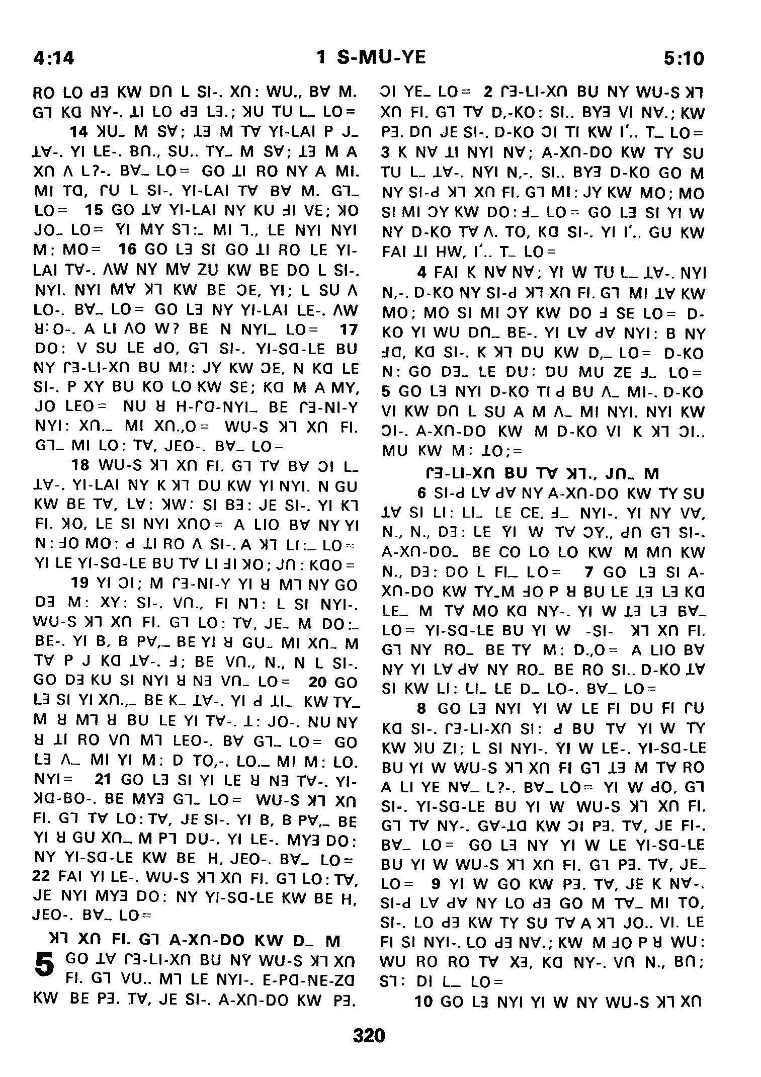 1980年傈僳語聖經全書 撒母耳記上 4 章 14 節到 5 章 10 節