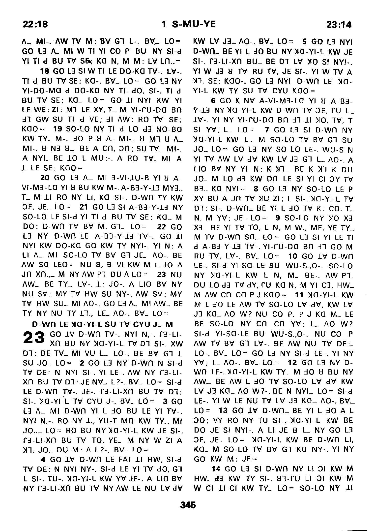 1980年傈僳語聖經全書 撒母耳記上 22 章 18 節到 23 章 14 節